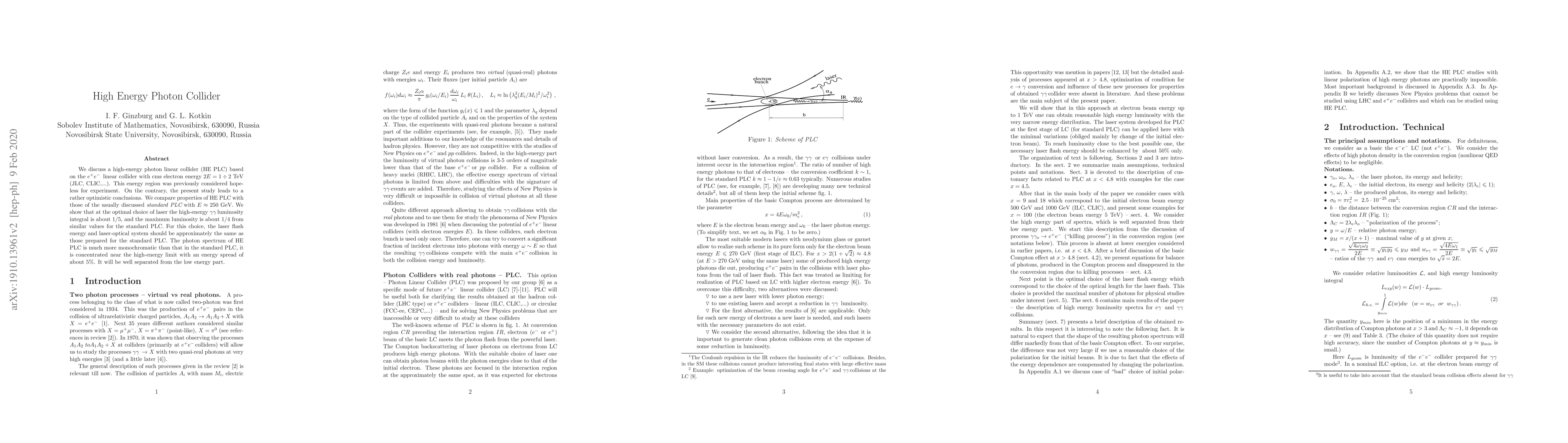 This paper explores the feasibility of a high-energy photon linear collider (HE PLC) operating at electron energies of 1-2 TeV, demonstrating that it offers promising results despite previous skepticism. The study finds that HE PLC's luminosity and laser requirements are comparable to those of the standard PLC, while its photon spectrum is notably more monochromatic.
