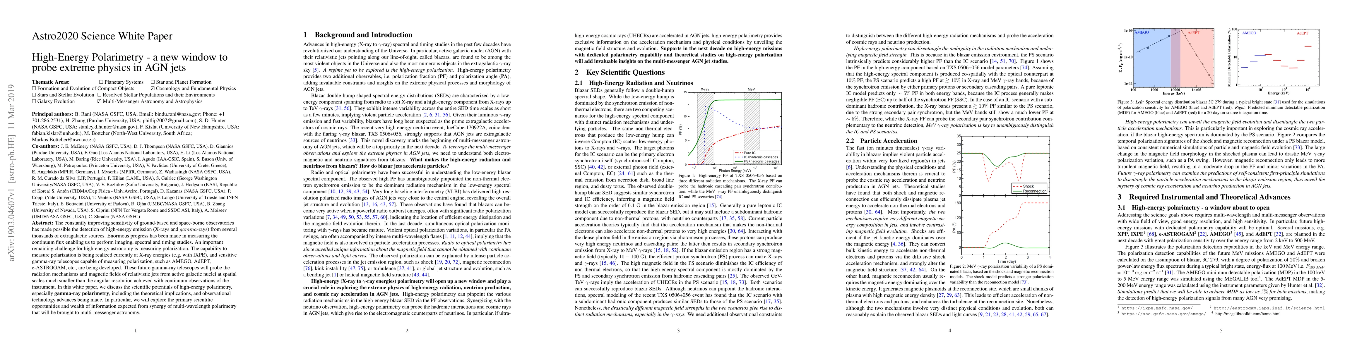 This paper explores the scientific potential of high-energy polarimetry, particularly gamma-ray polarimetry, to investigate the radiation mechanisms and magnetic fields in active galactic nuclei jets. It highlights the technological advancements and the expected synergy of multi-wavelength polarimetry for multi-messenger astronomy.