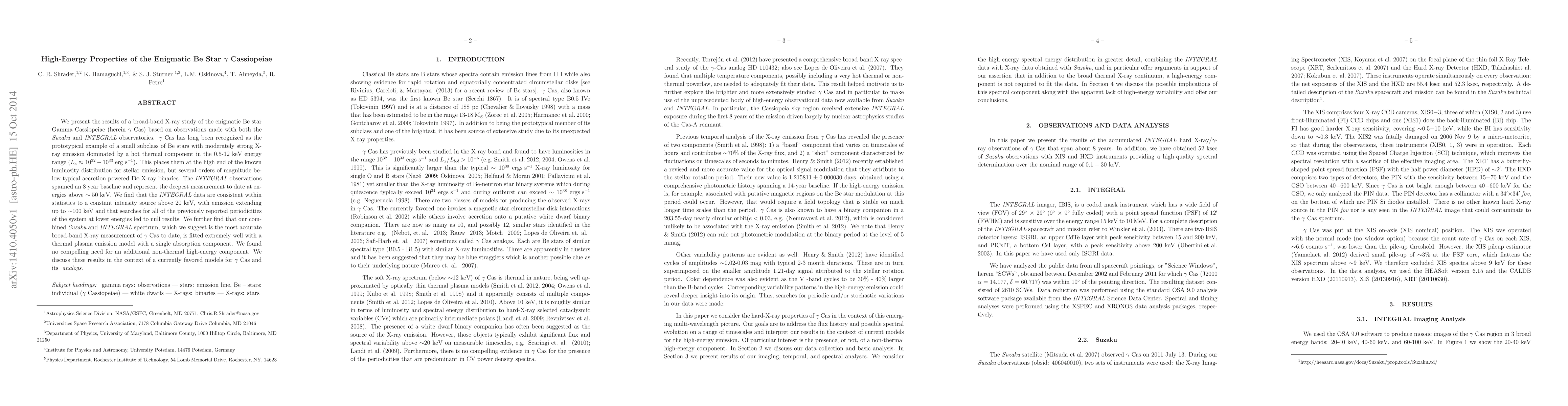 We present the results of a broad-band X-ray study of the enigmatic Be star Gamma Cassiopeiae (herein gamma Cas) based on observations made with both the Suzaku and INTEGRAL observatories. gamma Cas has long been recognized as the prototypical example of a small subclass of Be stars with moderately strong X-ray emission dominated by a hot thermal component in the 0.5-12 keV energy range Lx ~ 10^32 - 10^33 erg s^-1. This places them at the high end of the known luminosity distribution for stellar emission, but several orders of magnitude below typical accretion powered Be X-ray binaries. The INTEGRAL observations spanned an 8 year baseline and represent the deepest measurement to date at energies above ~50 keV. We find that the INTEGRAL data are consistent within statistics to a constant intensity source above 20 keV, with emission extending up to ~100 keV and that searches for all of the previously reported periodicities of the system at lower energies led to null results. We further find that our combined Suzaku and INTEGRAL spectrum, which we suggest is the most accurate broad-band X-ray measurement of gamma Cas to date, is fitted extremely well with a thermal plasma emission model with a single absorption component. We found no compelling need for an additional non-thermal high-energy component. We discuss these results in the context of a currently favored models for gamma Cas and its analogs.
