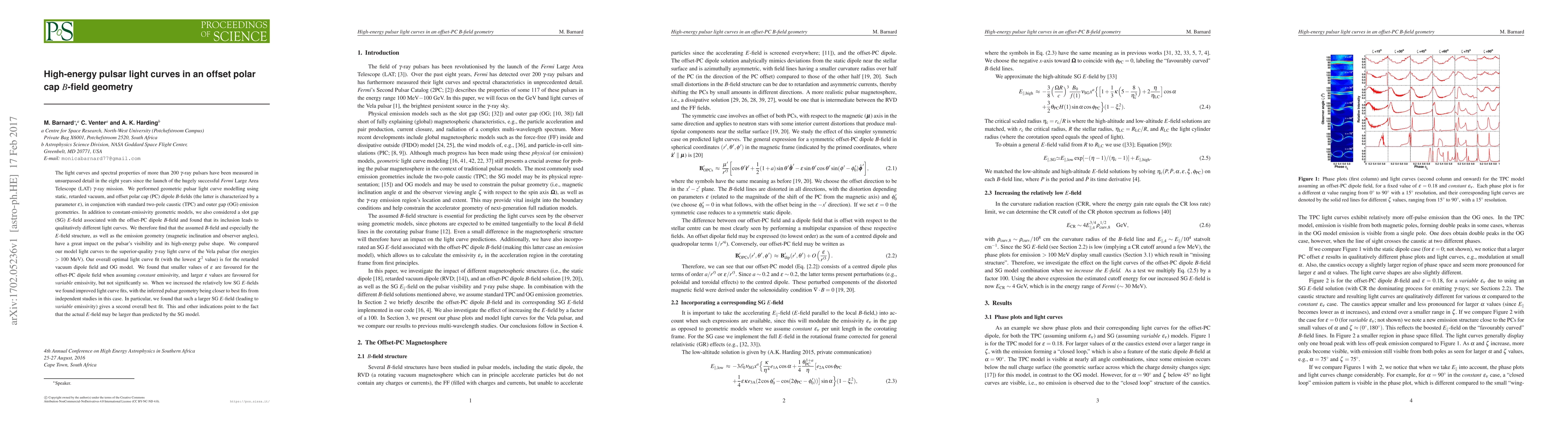 The light curves and spectral properties of more than 200 $\gamma$-ray pulsars have been measured in unsurpassed detail in the eight years since the launch of the hugely successful Fermi Large Area Telescope (LAT) $\gamma$-ray mission. We performed geometric pulsar light curve modelling using static, retarded vacuum, and offset polar cap (PC) dipole $B$-fields (the latter is characterized by a parameter $\epsilon$), in conjunction with standard two-pole caustic (TPC) and outer gap (OG) emission geometries. In addition to constant-emissivity geometric models, we also considered a slot gap (SG) $E$-field associated with the offset-PC dipole $B$-field and found that its inclusion leads to qualitatively different light curves. We therefore find that the assumed $B$-field and especially the $E$-field structure, as well as the emission geometry (magnetic inclination and observer angles), have a great impact on the pulsar's visibility and its high-energy pulse shape. We compared our model light curves to the superior-quality $\gamma$-ray light curve of the Vela pulsar (for energies $>100$ MeV). Our overall optimal light curve fit (with the lowest $\chi^2$ value) is for the retarded vacuum dipole field and OG model. We found that smaller values of $\epsilon$ are favoured for the offset-PC dipole field when assuming constant emissivity, and larger $\epsilon$ values are favoured for variable emissivity, but not significantly so. When we increased the relatively low SG $E$-fields we found improved light curve fits, with the inferred pulsar geometry being closer to best fits from independent studies in this case. In particular, we found that such a larger SG $E$-field (leading to variable emissivity) gives a second overall best fit. This and other indications point to the fact that the actual $E$-field may be larger than predicted by the SG model.
