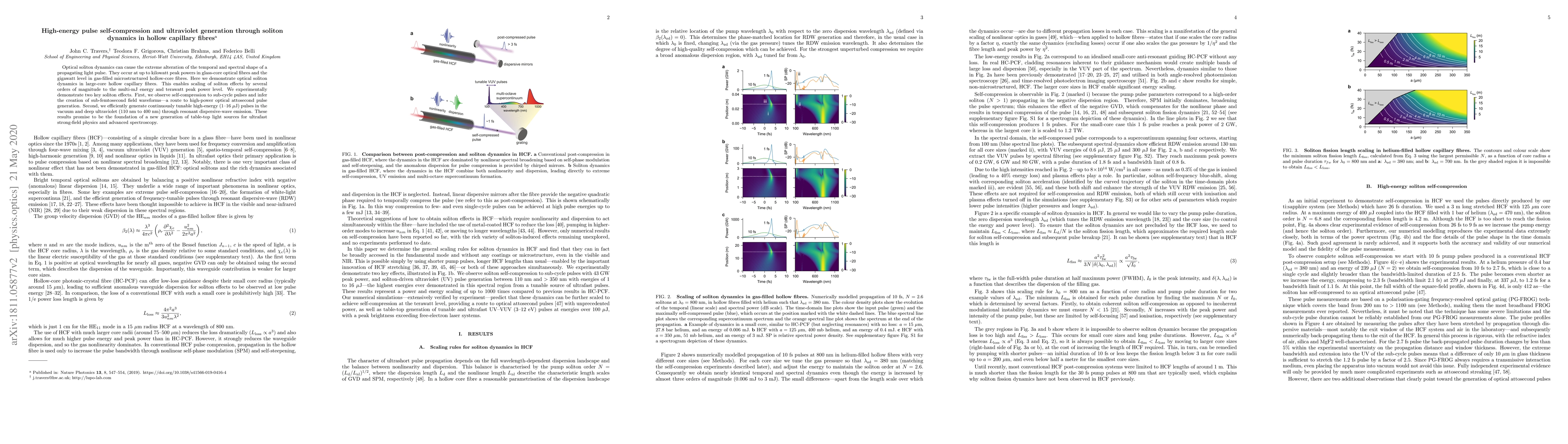 This paper demonstrates optical soliton dynamics in large-core hollow capillary fibres, enabling self-compression to sub-cycle pulses and the generation of high-energy ultraviolet pulses, paving the way for advanced table-top light sources in ultrafast physics and spectroscopy.