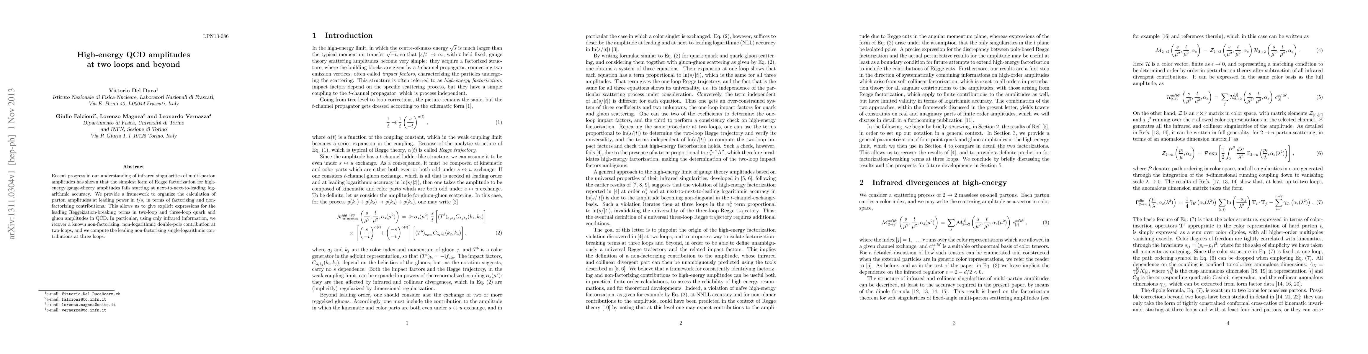 Recent progress in our understanding of infrared singularities of multi-parton amplitudes has shown that the simplest form of Regge factorization for high-energy gauge-theory amplitudes fails starting at next-to-next-to-leading logarithmic accuracy. We provide a framework to organize the calculation of parton amplitudes at leading power in t/s, in terms of factorizing and non-factorizing contributions. This allows us to give explicit expressions for the leading Reggeization-breaking terms in two-loop and three-loop quark and gluon amplitudes in QCD. In particular, using only infrared information, we recover a known non-factorizing, non-logarithmic double-pole contribution at two-loops, and we compute the leading non-factorizing single-logarithmic contributions at three loops.