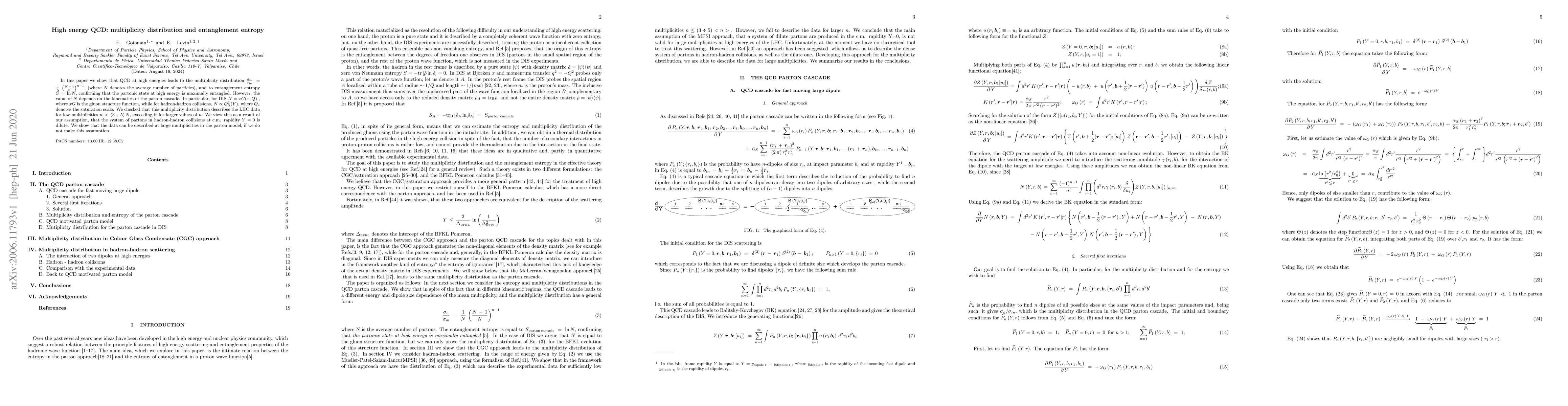In this paper we show that QCD at high energies leads to the multiplicity distribution $\frac{\sigma_n}{\sigma_{ \rm in}}\,\,=\,\,\frac{1}{N}\,\Lb \frac{N\,-\,1}{N}\Rb^{n - 1}$, (where $N$ denotes the average number of particles), and to entanglement entropy $S \,=\,\ln N$, confirming that the partonic stat at high energy is maximally entangled. However, the value of $N$ depends on the kinematics of the parton cascade. In particular, for DIS$N = xG(x,Q)$ , where $xG$ is the gluon structure function, whil for hadron-hadron collisions, $N \propto Q^2_S(Y)$, where $Q_s$ denotes the saturation scale. We checked that this multiplicity distribution describes the LHC data for low multiplicities $n \,<\,(3 \div 5)\,N$, exceeding it for larger values of $n$. We view this as a result of our assumption, that the system of partons in hadron-hadron collisions atc.m. rapidity $Y=0$ is dilute. We show that the data can be described at large multiplicities in the parton model, if we do not make this assumption.