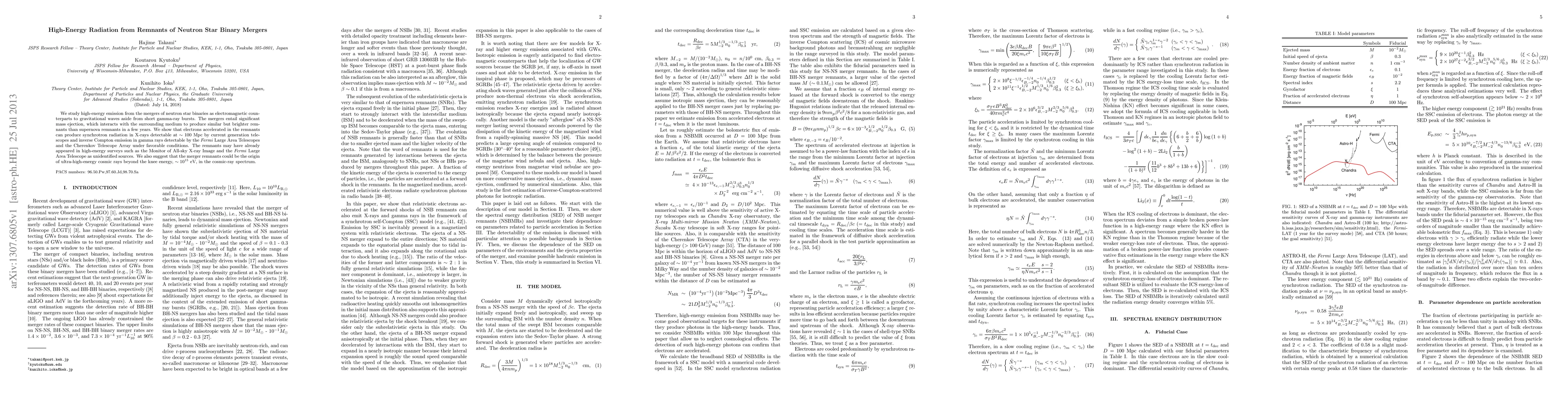 This paper investigates high-energy emissions from neutron star binary mergers, showing that remnants can produce detectable synchrotron radiation in X-rays and inverse Compton emission in gamma rays. It suggests these remnants may be sources of ultra-high-energy cosmic rays and could explain unidentified high-energy sources.