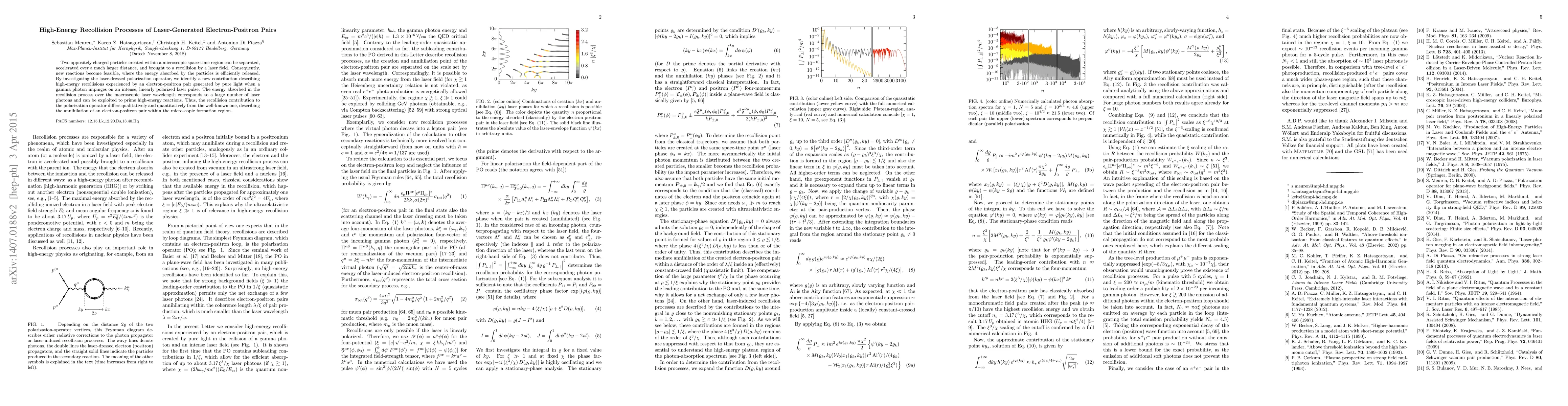 Two oppositely charged particles created within a microscopic space-time region can be separated, accelerated over a much larger distance, and brought to a recollision by a laser field. Consequently, new reactions become feasible, where the energy absorbed by the particles is efficiently released. By investigating the laser-dressed polarization operator, we identify a new contribution describing high-energy recollisions experienced by an electron-positron pair generated by pure light when a gamma photon impinges on an intense, linearly polarized laser pulse. The energy absorbed in the recollision process over the macroscopic laser wavelength corresponds to a large number of laser photons and can be exploited to prime high-energy reactions. Thus, the recollision contribution to the polarization operator differs qualitatively and quantitatively from the well-known one, describing the annihilation of an electron-positron pair within the microscopic formation region.