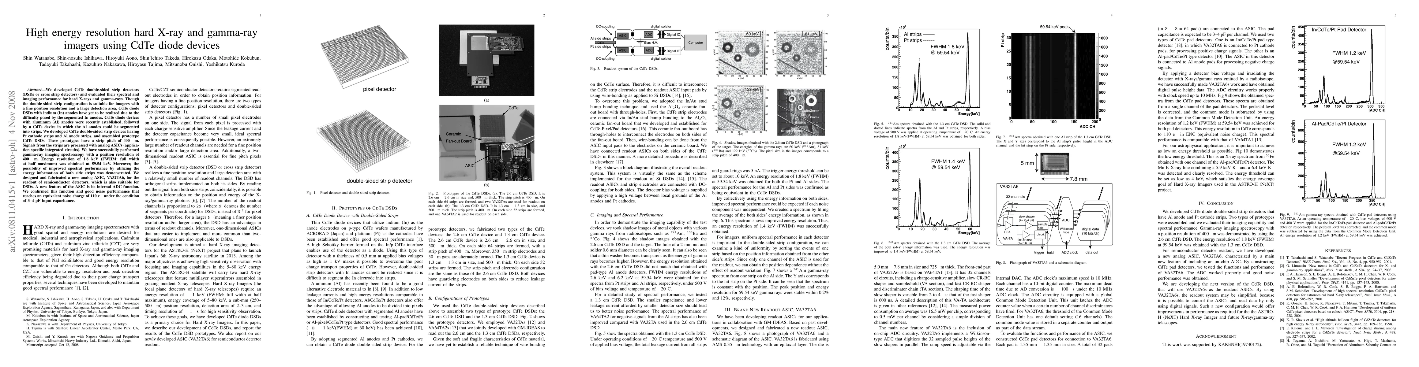This paper details the development of CdTe double-sided strip detectors (DSDs) for high-energy resolution hard X-ray and gamma-ray imaging, achieving a position resolution of 400 micrometers and an energy resolution of 1.8 keV at 59.54 keV. The new analog ASIC, VA32TA6, with an integrated ADC, was designed for efficient readout and demonstrated excellent noise performance.
