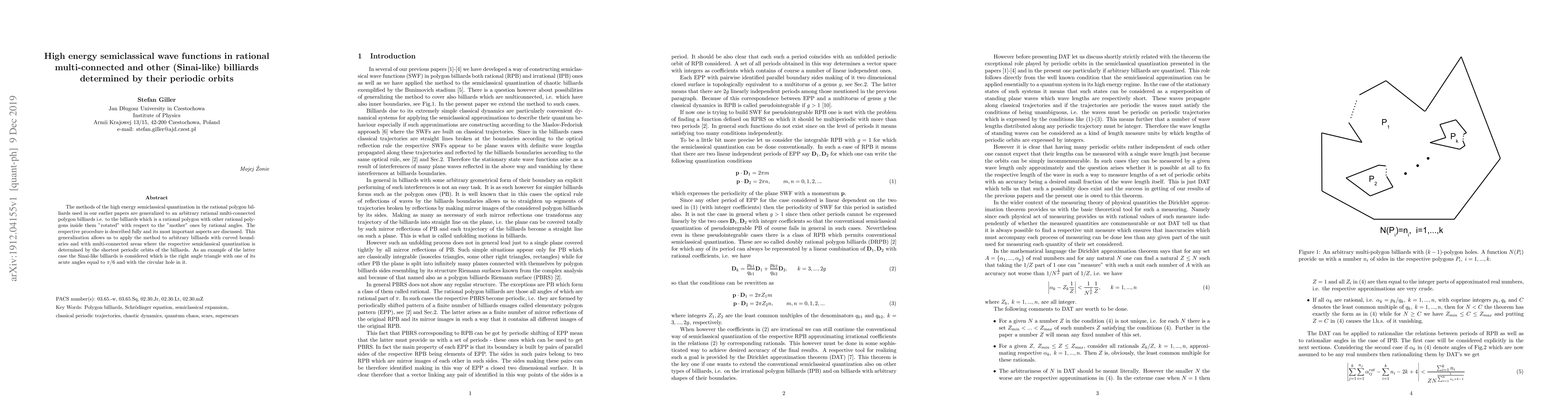 The methods of the high energy semiclassical quantization in the rational polygon billiards used in our earlier papers are generalized to an arbitrary rational multi-connected polygon billiards i.e. to the billiards which is a rational polygon with other rational polygons inside them "rotated" with respect to the "mother" ones by rational angles. The respective procedure is described fully and its most important aspects are discussed. This generalization allows us to apply the method to arbitrary billiards with curved boundaries and with multi-connected areas where the respective semiclassical quantization is determined by the shortest periodic orbits of the billiards. As an example of the latter case the Sinai-like billiards is considered which is the right angle triangle with one of its acute angles equal to $\pi/6$ and with the circular hole in it.