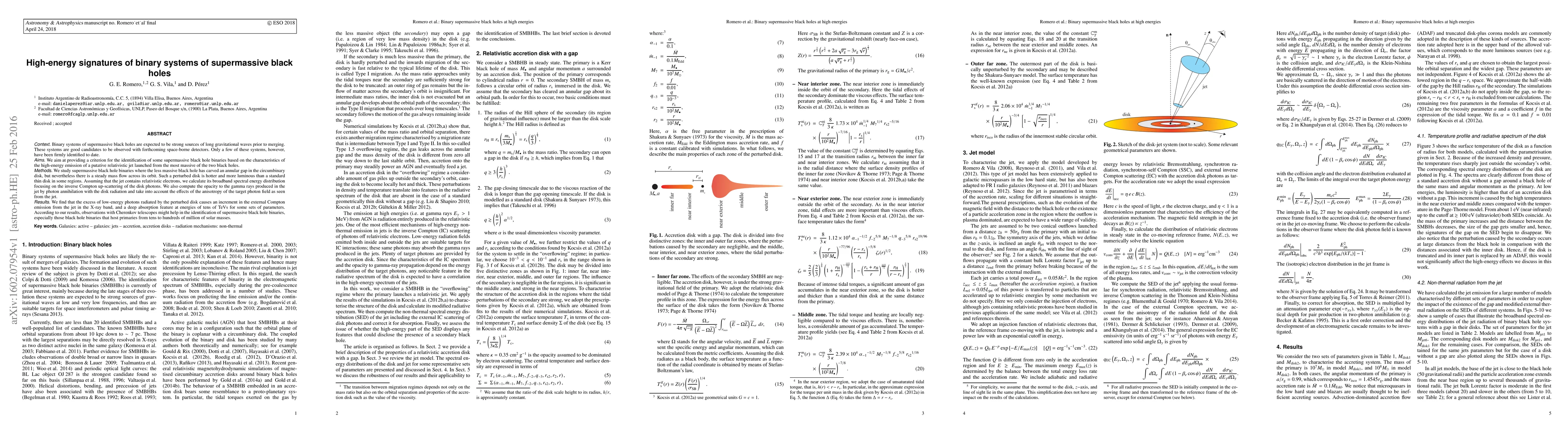This paper proposes a method to identify supermassive black hole binaries based on high-energy emissions from relativistic jets. It finds that perturbed disks in these systems can lead to increased X-ray emissions and TeV absorption features, suggesting Cherenkov telescopes could detect these signatures.