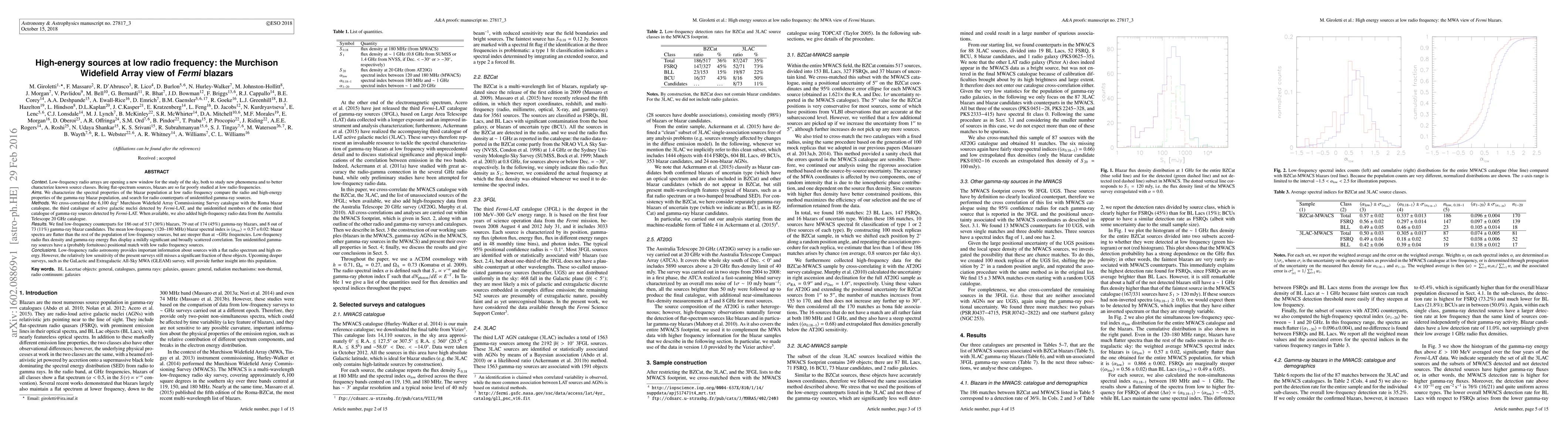 This paper investigates the spectral properties of blazars at low radio frequencies using the Murchison Widefield Array. It finds that blazars exhibit flatter low-frequency spectra compared to other radio sources and correlates low-frequency radio flux with gamma-ray energy flux, suggesting potential insights into high-energy phenomena.