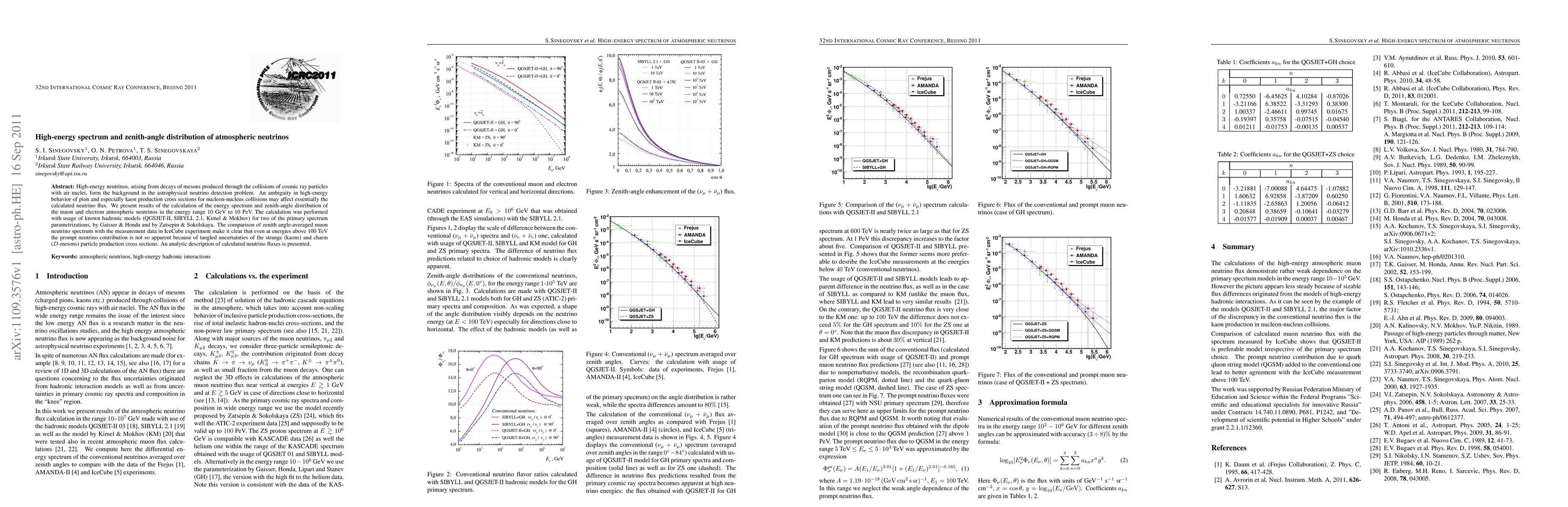 High-energy neutrinos, arising from decays of mesons produced through the collisions of cosmic ray particles with air nuclei, form the background in the astrophysical neutrino detection problem. An ambiguity in high-energy behavior of pion and especially kaon production cross sections for nucleon-nucleus collisions may affect essentially the calculated neutrino flux. We present results of the calculation of the energy spectrum and zenith-angle distribution of the muon and electron atmospheric neutrinos in the energy range 10 GeV to 10 PeV. The calculation was performed with usage of known hadronic models (QGSJET-II-03, SIBYLL 2.1, Kimel & Mokhov) for two of the primary spectrum parametrizations, by Gaisser & Honda and by Zatsepin & Sokolskaya. The comparison of the calculated muon neutrino spectrum with the IceCube40 experiment data make it clear that even at energies above 100 TeV the prompt neutrino contribution is not so apparent because of tangled uncertainties of the strange (kaons) and charm (D-mesons) particle production cross sections. An analytic description of calculated neutrino fluxes is presented.