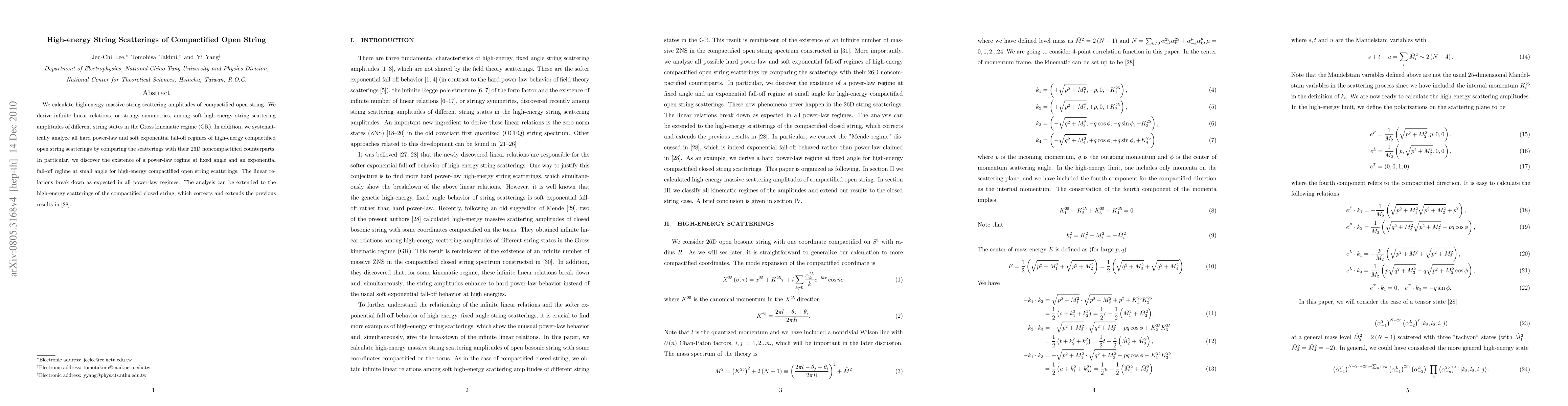 This paper calculates high-energy scattering amplitudes for compactified open strings, deriving stringy symmetries among soft scattering amplitudes. It identifies new power-law and exponential fall-off regimes in compactified string scatterings compared to their noncompactified counterparts, extending previous results for closed strings.