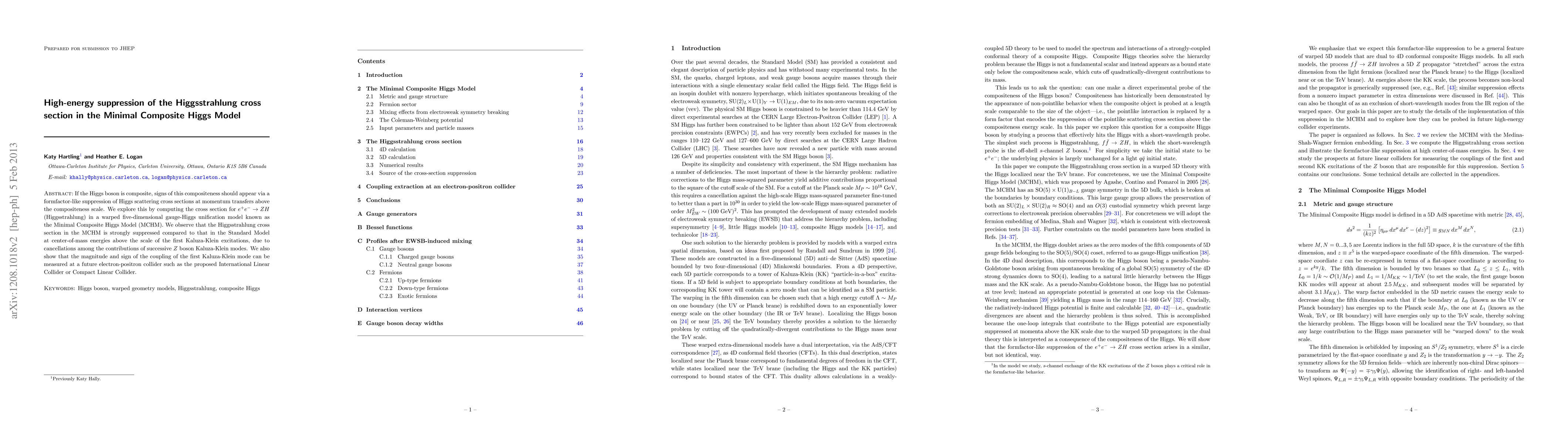 This paper investigates the Higgsstrahlung cross-section in the Minimal Composite Higgs Model (MCHM) and finds significant suppression compared to the Standard Model at high energies, due to cancellations among Z boson Kaluza-Klein modes. It concludes that the first Kaluza-Klein mode's coupling can be measured at future colliders.