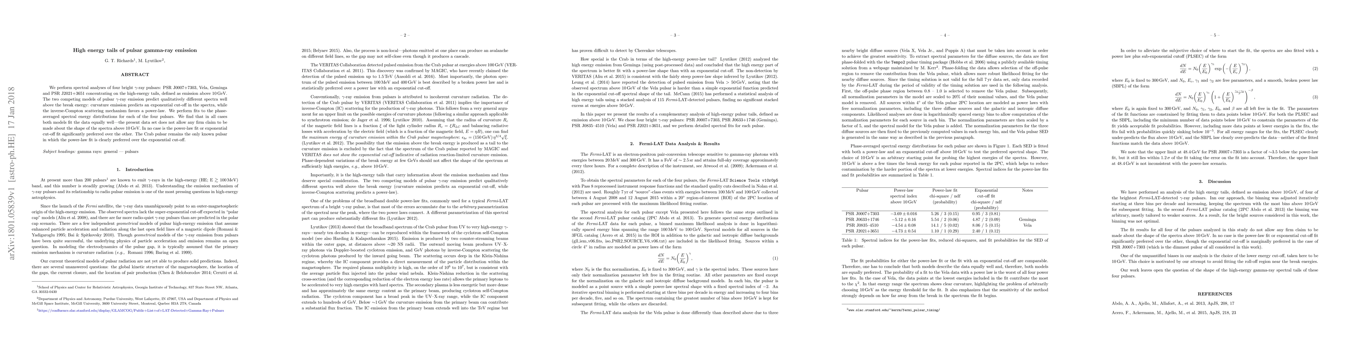 This study analyzes the high-energy gamma-ray emission from four pulsars, finding that both curvature emission and inverse-Compton scattering models fit the data equally well above 10 GeV, with no clear preference for either model. The Crab pulsar remains unique in showing a clear preference for a power-law fit over an exponential cut-off.