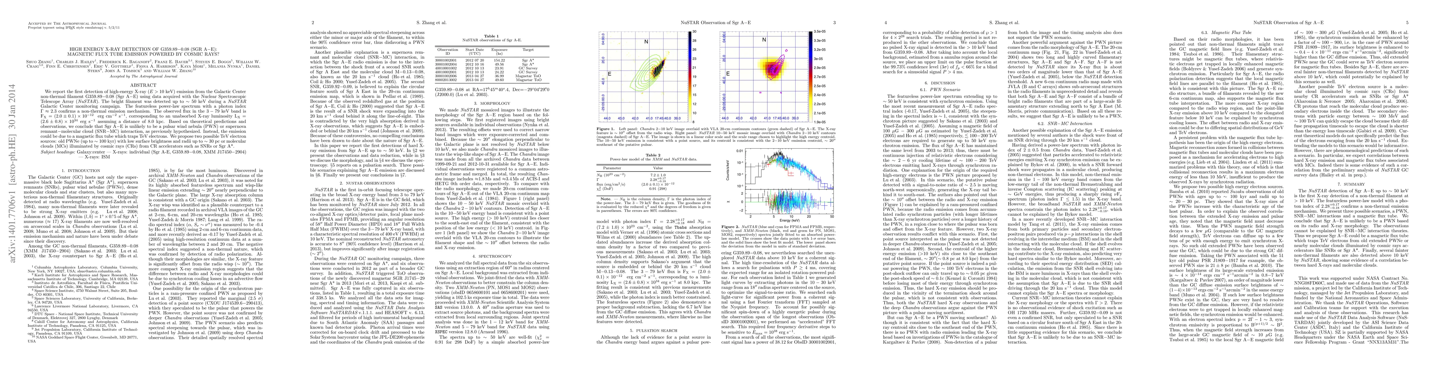 We report the first detection of high-energy X-ray (E>10 keV) emission from the Galactic Center non-thermal filament G359.89-0.08 (Sgr A-E) using data acquired with the Nuclear Spectroscopic Telescope Array (NuSTAR). The bright filament was detected up to ~50 keV during a NuSTAR Galactic Center monitoring campaign. The featureless power-law spectrum with a photon index of ~2.3 confirms a non-thermal emission mechanism. The observed flux in the 3-79 keV band is ~ 2.0e-12 erg/cm^2/s, corresponding to an unabsorbed X-ray luminosity of ~2.6e34 erg/s assuming a distance of 8.0 kpc. Based on theoretical predictions and observations, we conclude that Sgr A-E is unlikely to be a pulsar wind nebula (PWN) or supernova remnant-molecular cloud (SNR-MC) interaction, as previously hypothesized. Instead, the emission could be due to a magnetic flux tube which traps TeV electrons. We propose two possible TeV electron sources: old PWNe (up to ~100 kyr) with low surface brightness and radii up to ~30 pc or molecular clouds (MCs) illuminated by cosmic rays (CRs) from CR accelerators such as SNRs or Sgr A*.