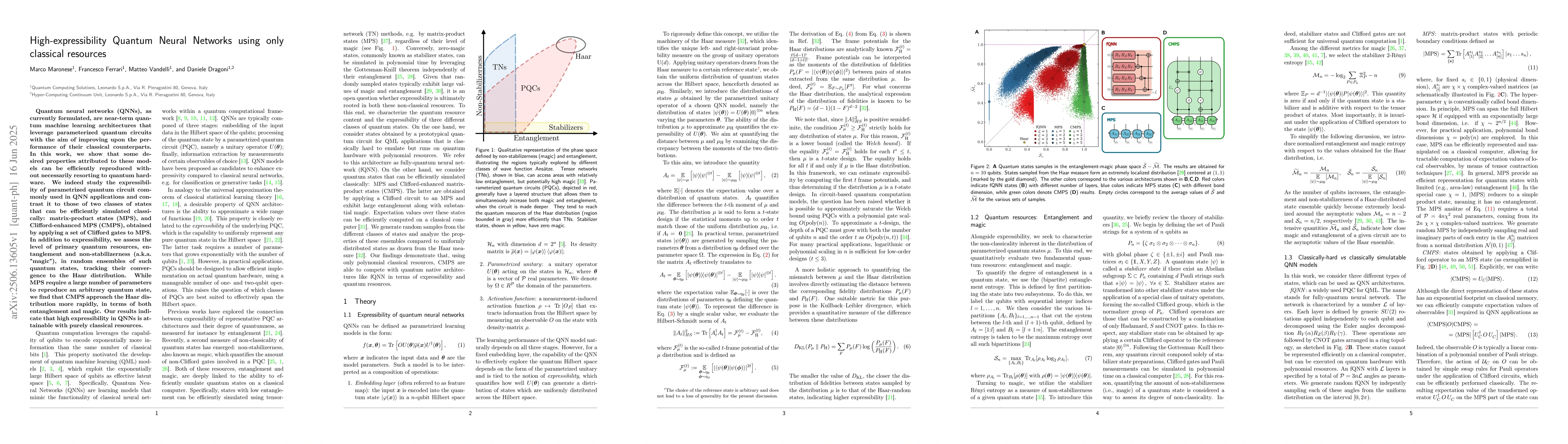 Quantum neural networks (QNNs), as currently formulated, are near-term quantum machine learning architectures that leverage parameterized quantum circuits with the aim of improving upon the performance of their classical counterparts. In this work, we show that some desired properties attributed to these models can be efficiently reproduced without necessarily resorting to quantum hardware. We indeed study the expressibility of parametrized quantum circuit commonly used in QNN applications and contrast it to those of two classes of states that can be efficiently simulated classically: matrix-product states (MPS), and Clifford-enhanced MPS (CMPS), obtained by applying a set of Clifford gates to MPS. In addition to expressibility, we assess the level of primary quantum resources, entanglement and non-stabilizerness (a.k.a. "magic"), in random ensembles of such quantum states, tracking their convergence to the Haar distribution. While MPS require a large number of parameters to reproduce an arbitrary quantum state, we find that CMPS approach the Haar distribution more rapidly, in terms of both entanglement and magic. Our results indicate that high expressibility in QNNs is attainable with purely classical resources.
