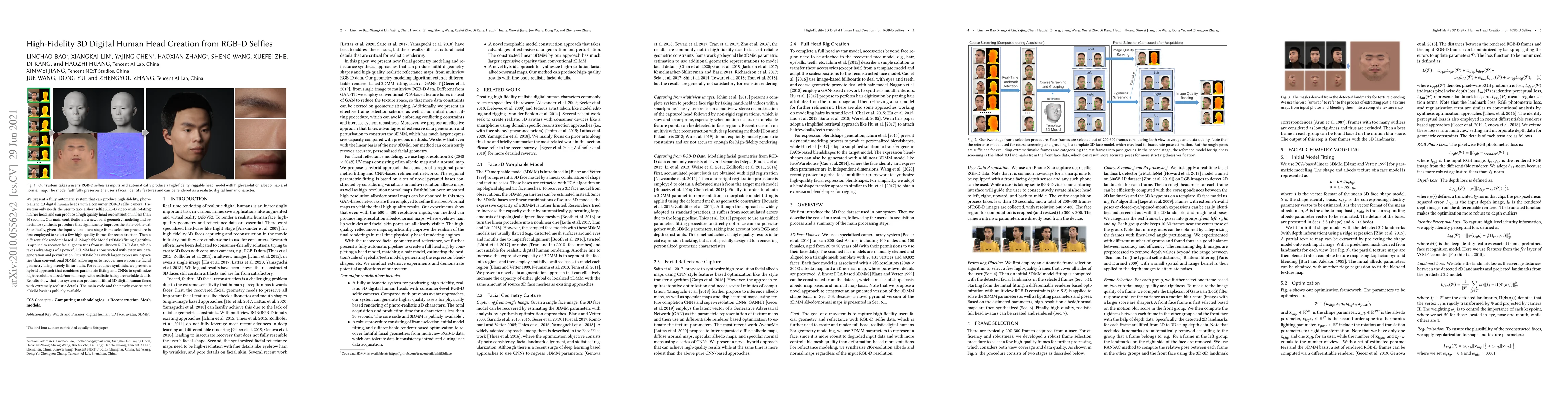 This paper introduces an automatic system for generating high-fidelity, photo-realistic 3D digital human heads from RGB-D selfies. It employs a two-stage frame selection and a novel 3DMM fitting algorithm for accurate facial geometry reconstruction, combined with a hybrid approach for realistic reflectance synthesis.