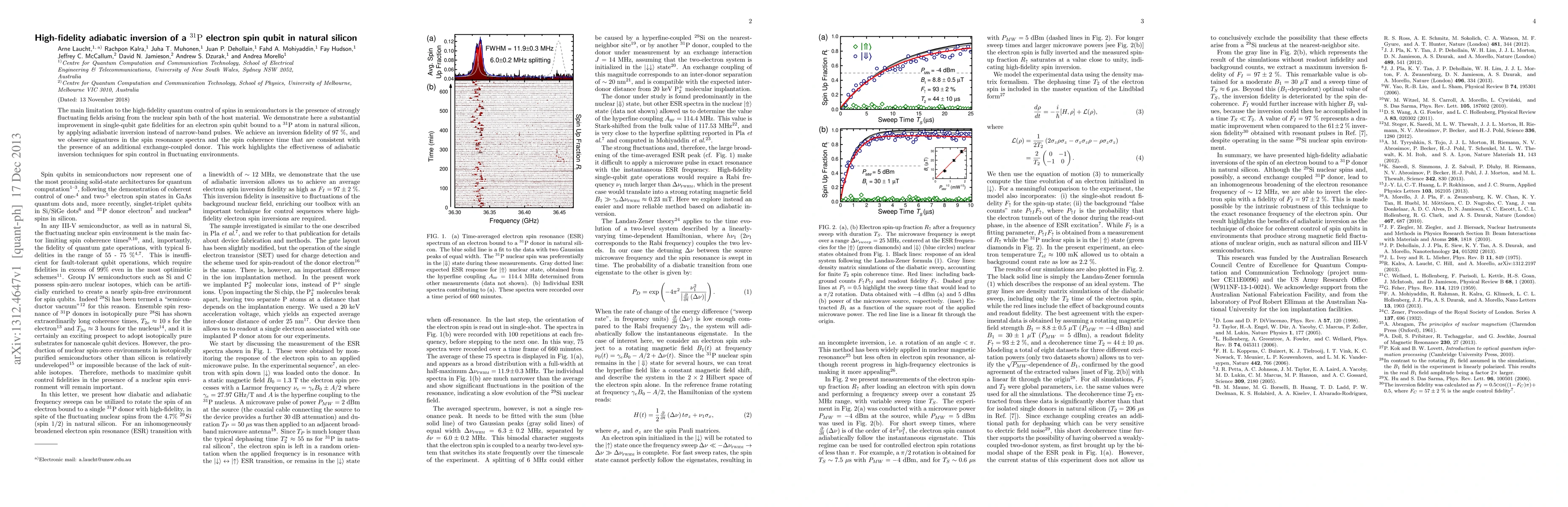 The main limitation to the high-fidelity quantum control of spins in semiconductors is the presence of strongly fluctuating fields arising from the nuclear spin bath of the host material. We demonstrate here a substantial improvement in single-qubit gate fidelities for an electron spin qubit bound to a $^{31}$P atom in natural silicon, by applying adiabatic inversion instead of narrow-band pulses. We achieve an inversion fidelity of 97%, and we observe signatures in the spin resonance spectra and the spin coherence time that are consistent with the presence of an additional exchange-coupled donor. This work highlights the effectiveness of adiabatic inversion techniques for spin control in fluctuating environments.