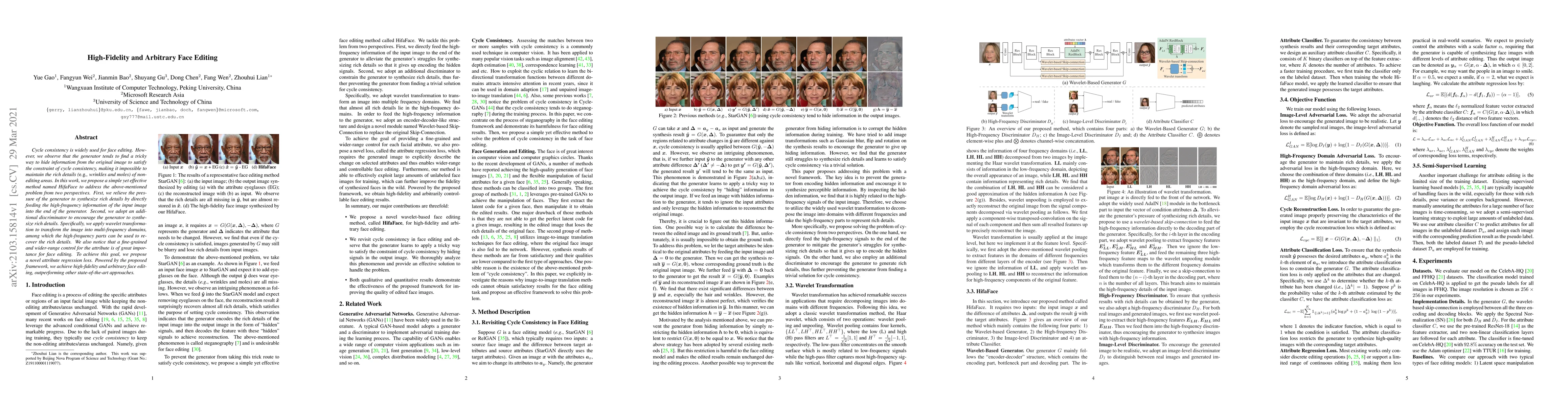 Cycle consistency is widely used for face editing. However, we observe that the generator tends to find a tricky way to hide information from the original image to satisfy the constraint of cycle consistency, making it impossible to maintain the rich details (e.g., wrinkles and moles) of non-editing areas. In this work, we propose a simple yet effective method named HifaFace to address the above-mentioned problem from two perspectives. First, we relieve the pressure of the generator to synthesize rich details by directly feeding the high-frequency information of the input image into the end of the generator. Second, we adopt an additional discriminator to encourage the generator to synthesize rich details. Specifically, we apply wavelet transformation to transform the image into multi-frequency domains, among which the high-frequency parts can be used to recover the rich details. We also notice that a fine-grained and wider-range control for the attribute is of great importance for face editing. To achieve this goal, we propose a novel attribute regression loss. Powered by the proposed framework, we achieve high-fidelity and arbitrary face editing, outperforming other state-of-the-art approaches.