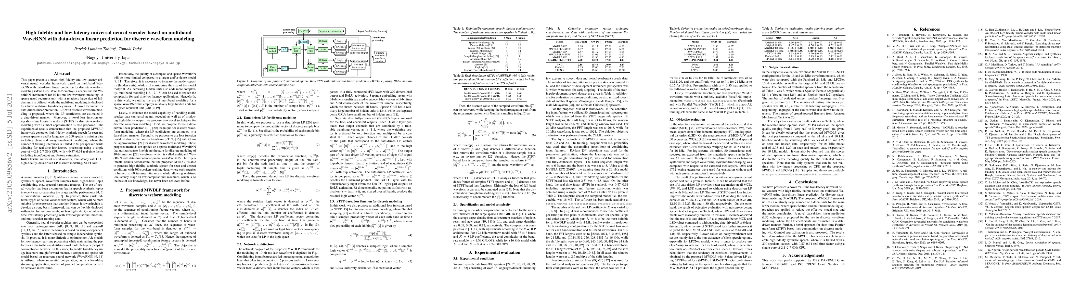 This paper presents a high-fidelity and low-latency neural vocoder framework that can generate realistic speech for seen and unseen speakers in real-time, using a novel multiband WaveRNN architecture and data-driven linear prediction technique.