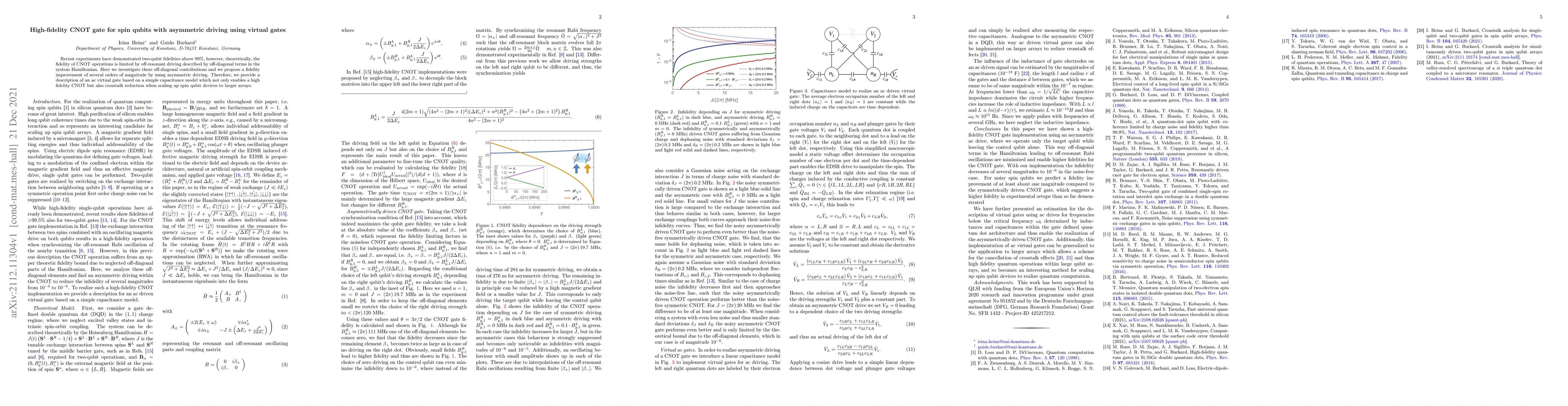 Recent experiments have demonstrated two-qubit fidelities above 99%, however, theoretically, the fidelity of CNOT operations is limited by off-resonant driving described by off-diagonal terms in the system Hamiltonian. Here we investigate these off-diagonal contributions and we propose a fidelity improvement of several orders of magnitude by using asymmetric driving. Therefore, we provide a description of an ac virtual gate based on a simple capacitance model which not only enables a high fidelity CNOT but also crosstalk reduction when scaling up spin qubit devices to larger arrays.