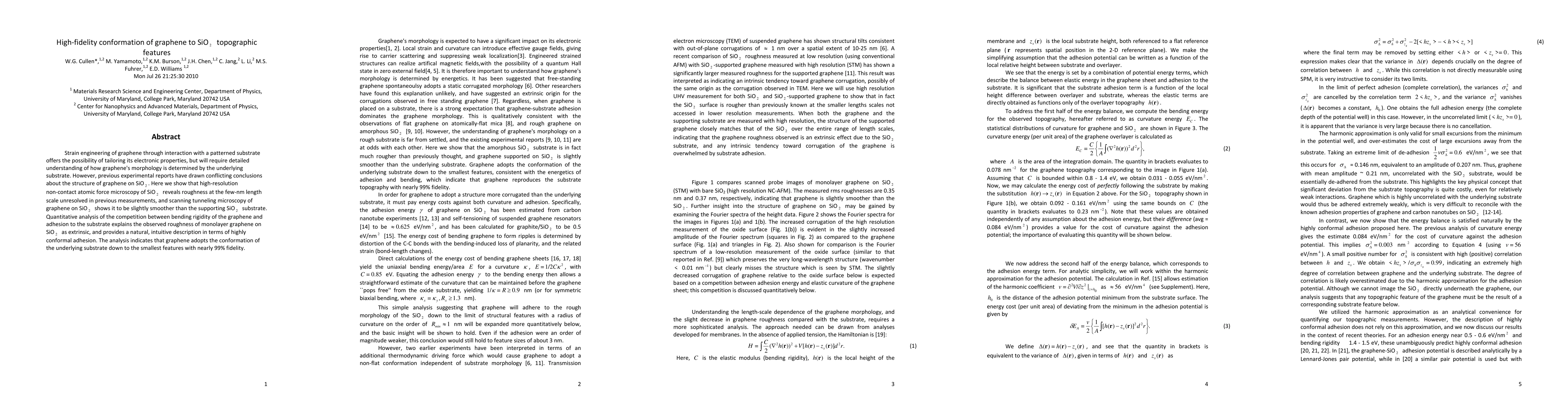 This paper demonstrates that monolayer graphene conforms to the nanoscale roughness of a SiO2 substrate with high fidelity, using advanced microscopy techniques. The study resolves previous discrepancies by showing that graphene adheres closely to the substrate, achieving nearly 99% fidelity in following the substrate's topography.