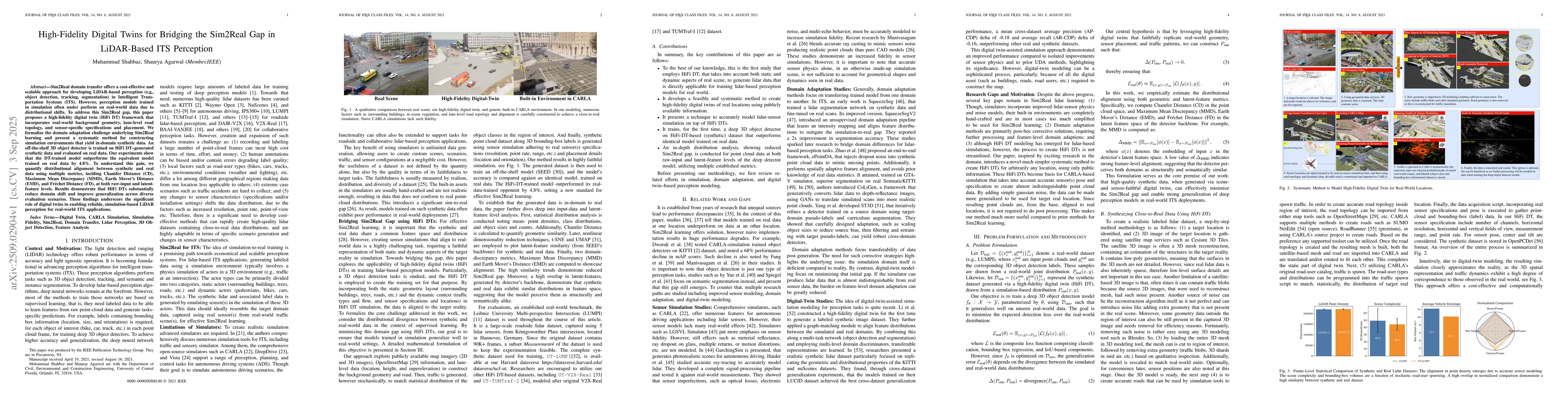 Sim2Real domain transfer offers a cost-effective and scalable approach for developing LiDAR-based perception (e.g., object detection, tracking, segmentation) in Intelligent Transportation Systems (ITS). However, perception models trained in simulation often under perform on real-world data due to distributional shifts. To address this Sim2Real gap, this paper proposes a high-fidelity digital twin (HiFi DT) framework that incorporates real-world background geometry, lane-level road topology, and sensor-specific specifications and placement. We formalize the domain adaptation challenge underlying Sim2Real learning and present a systematic method for constructing simulation environments that yield in-domain synthetic data. An off-the-shelf 3D object detector is trained on HiFi DT-generated synthetic data and evaluated on real data. Our experiments show that the DT-trained model outperforms the equivalent model trained on real data by 4.8%. To understand this gain, we quantify distributional alignment between synthetic and real data using multiple metrics, including Chamfer Distance (CD), Maximum Mean Discrepancy (MMD), Earth Mover's Distance (EMD), and Fr'echet Distance (FD), at both raw-input and latent-feature levels. Results demonstrate that HiFi DTs substantially reduce domain shift and improve generalization across diverse evaluation scenarios. These findings underscore the significant role of digital twins in enabling reliable, simulation-based LiDAR perception for real-world ITS applications.