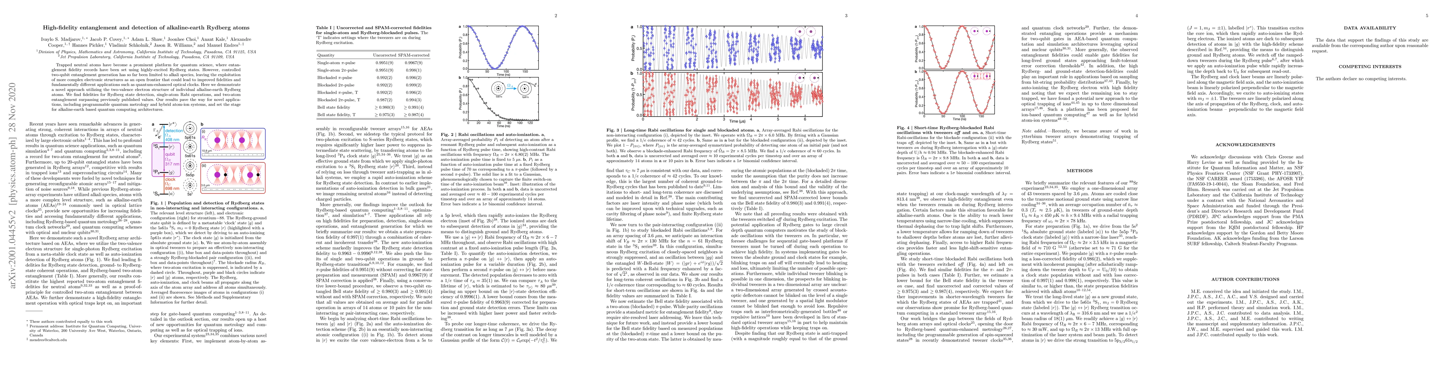 This paper presents a novel approach to high-fidelity entanglement and detection of alkaline-earth Rydberg atoms, achieving superior fidelities for Rydberg state detection and two-qubit entanglement compared to previous methods. The findings open new avenues for quantum computing and advanced quantum metrology applications.