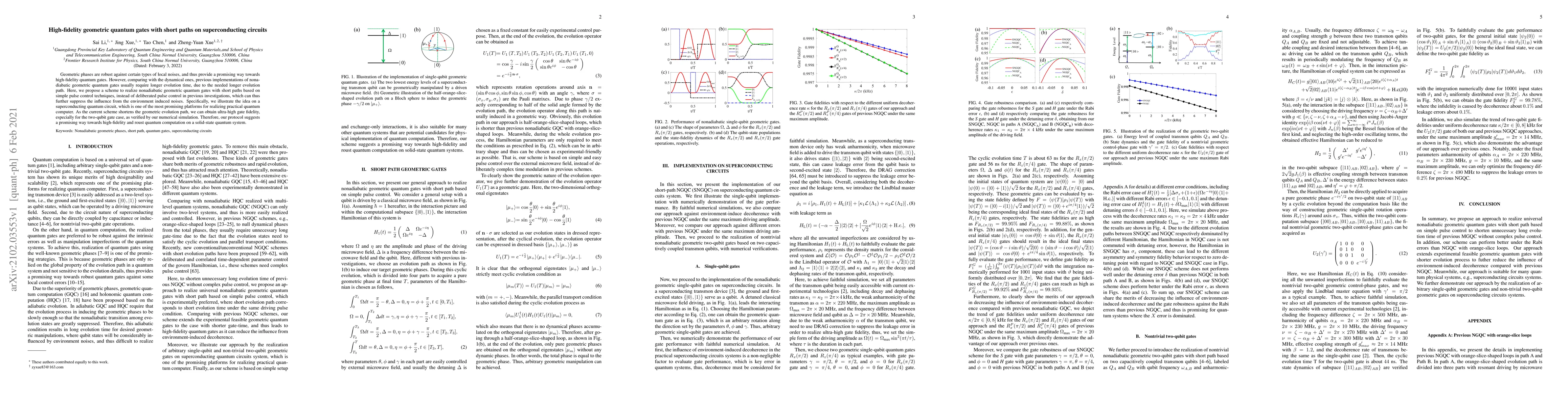This paper proposes a scheme for high-fidelity geometric quantum gates using short evolution paths on superconducting circuits, leveraging simple pulse control techniques to reduce noise and achieve ultra-high gate fidelity, especially for two-qubit gates, as demonstrated through numerical simulations.