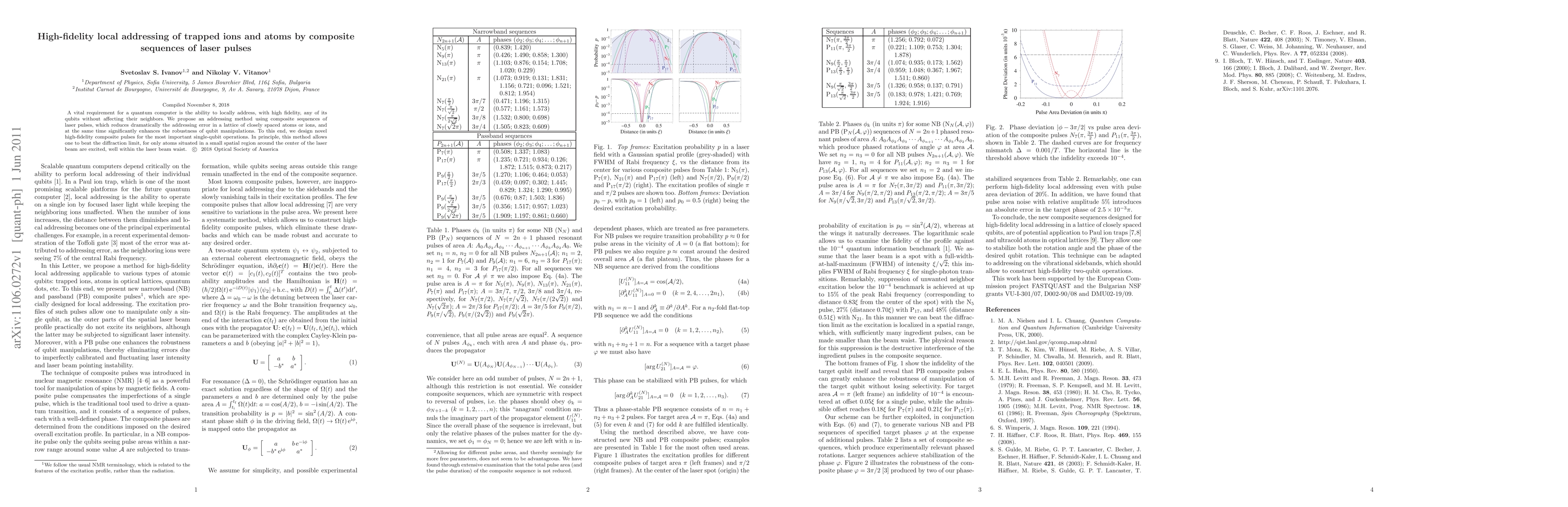 This research proposes a method using composite sequences of laser pulses to achieve high-fidelity local addressing of trapped atoms or ions in a quantum computer, significantly reducing addressing errors and enhancing qubit manipulation robustness. This approach could potentially surpass the diffraction limit, focusing laser excitation on a small spatial region within the beam waist.
