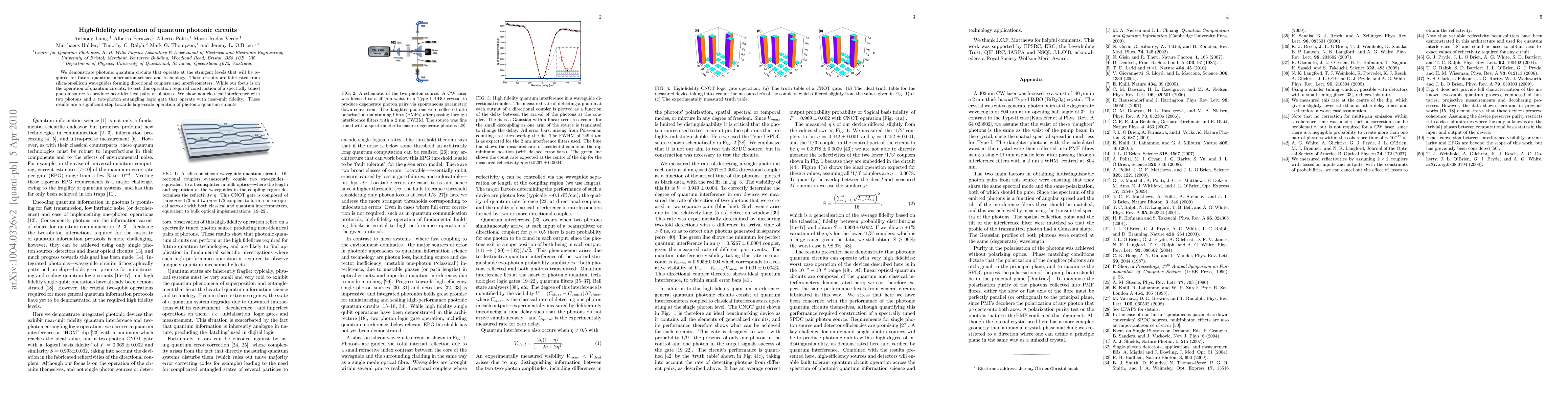 Researchers demonstrate photonic quantum circuits that operate with high fidelity, a crucial step towards large-scale quantum information science and technology. They achieve non-classical interference and entangling logic gates with near-unit fidelity using silica-on-silicon waveguides.