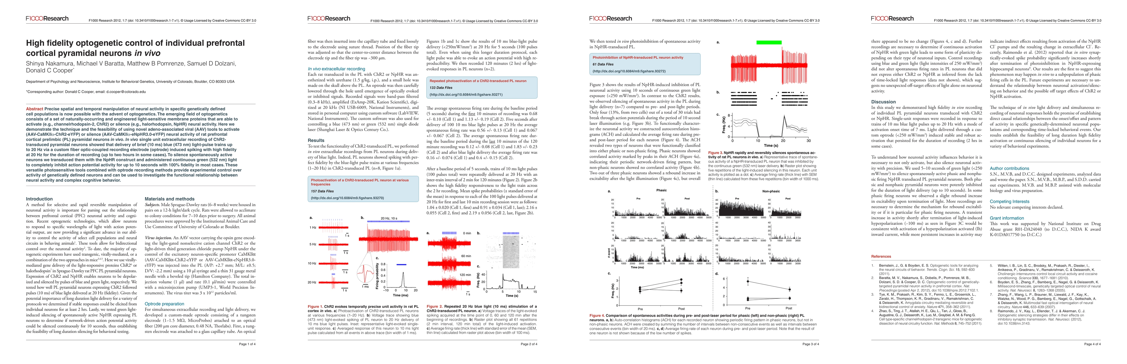 Researchers demonstrated precise control over individual neurons in rat prefrontal cortex using optogenetics, allowing for high-fidelity activation or silencing of neural activity at 20 Hz for up to two hours. This technique provides experimental control over genetically defined neurons, enabling investigation into the functional relationship between neural activity and cognitive behavior.