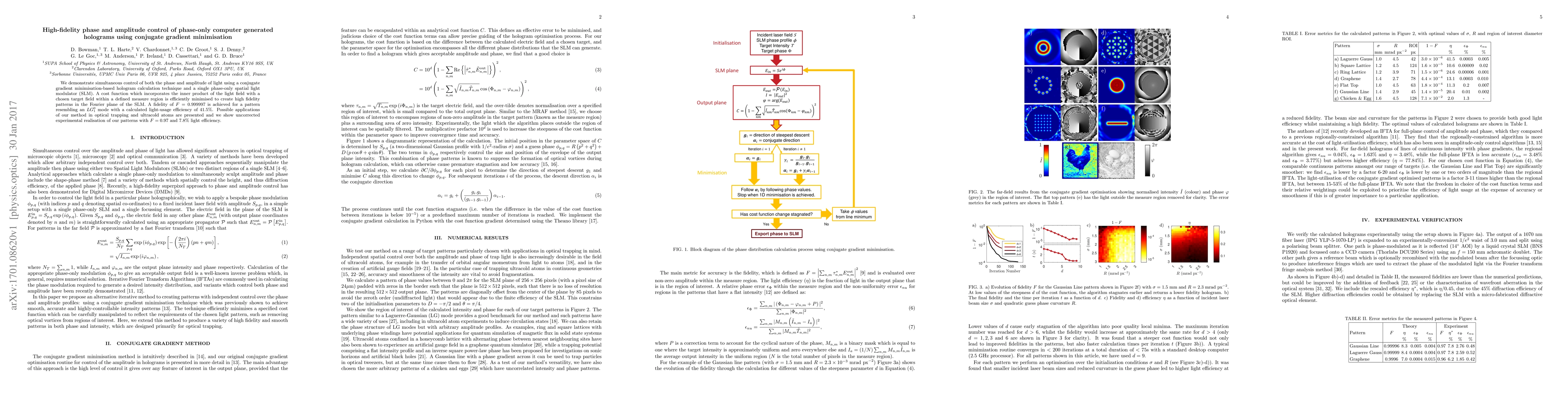 Researchers developed a method to control both phase and amplitude of holograms simultaneously using conjugate gradient minimisation and achieved high-fidelity patterns with 99.997% accuracy.