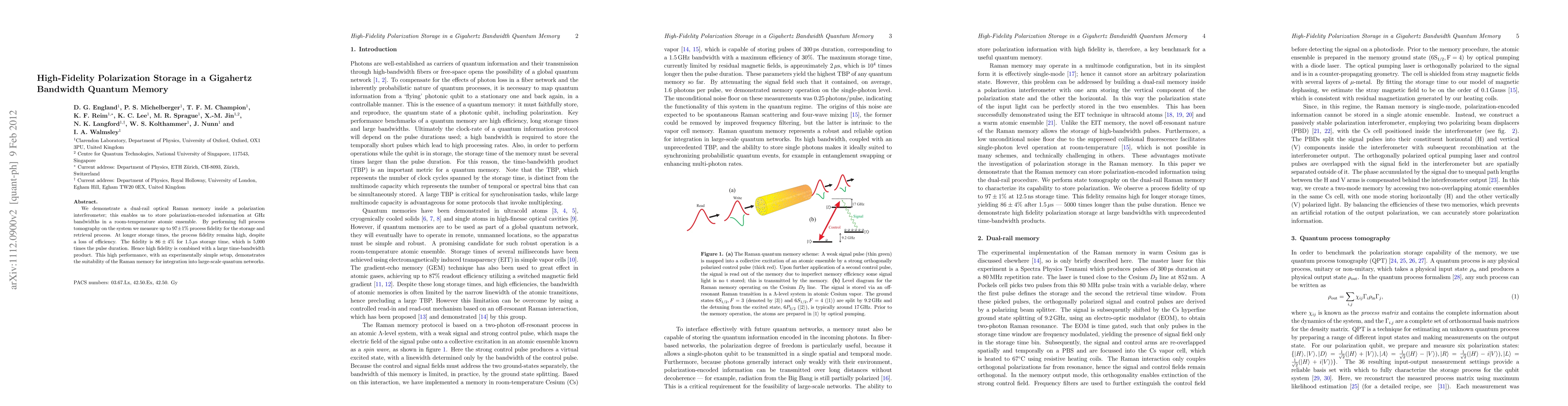This paper demonstrates a dual-rail optical Raman memory in a polarization interferometer that stores polarization-encoded information at gigahertz bandwidths using a room-temperature atomic ensemble, achieving 97±1% fidelity. The system maintains high fidelity over extended storage times, showing potential for integration into large-scale quantum networks.