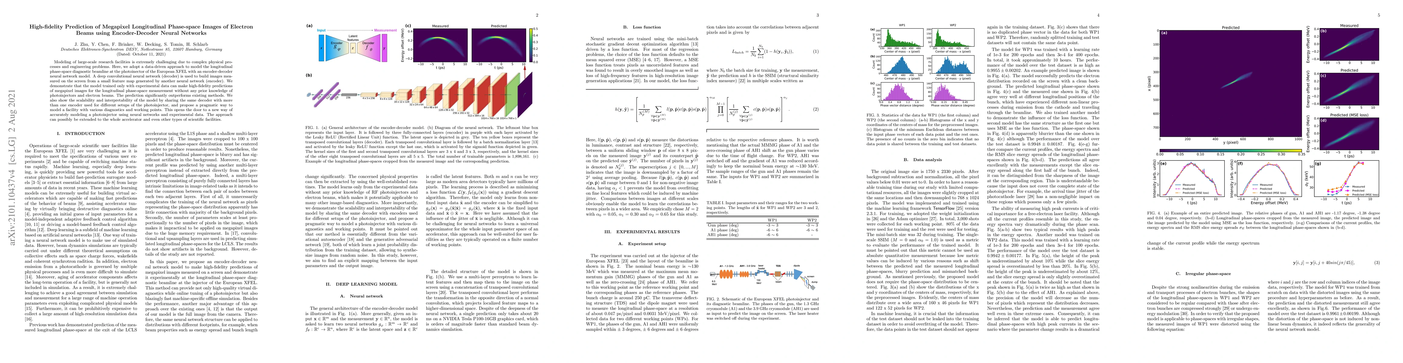 This paper presents a data-driven method using encoder-decoder neural networks to accurately predict megapixel longitudinal phase-space images of electron beams at the European XFEL photoinjector. The model, trained solely on experimental data, outperforms existing methods and demonstrates scalability and interpretability, paving the way for broader accelerator modeling.