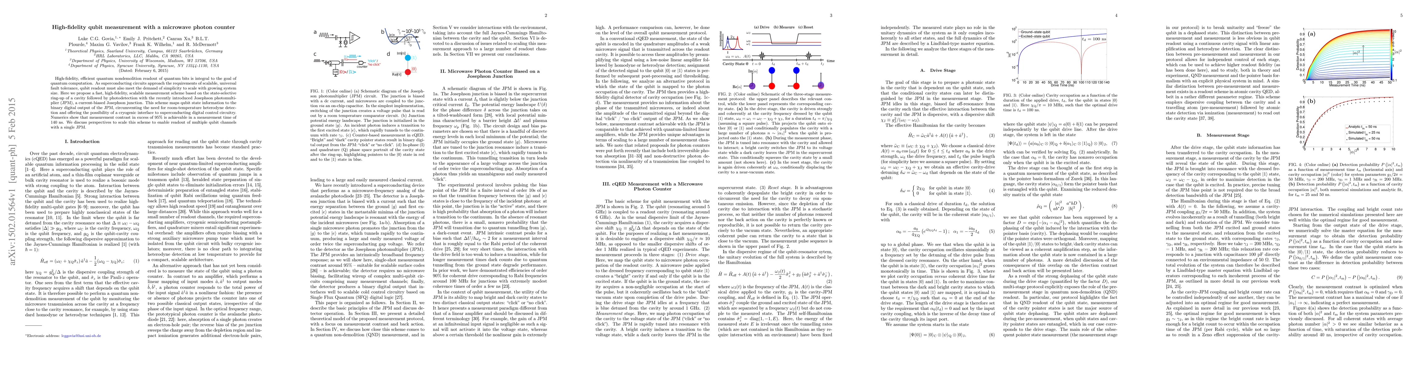 The research proposes a high-fidelity qubit measurement scheme using a microwave photon counter, specifically a Josephson photomultiplier (JPM), which offers a fast, scalable, and cryogenic-compatible solution for quantum computing.
