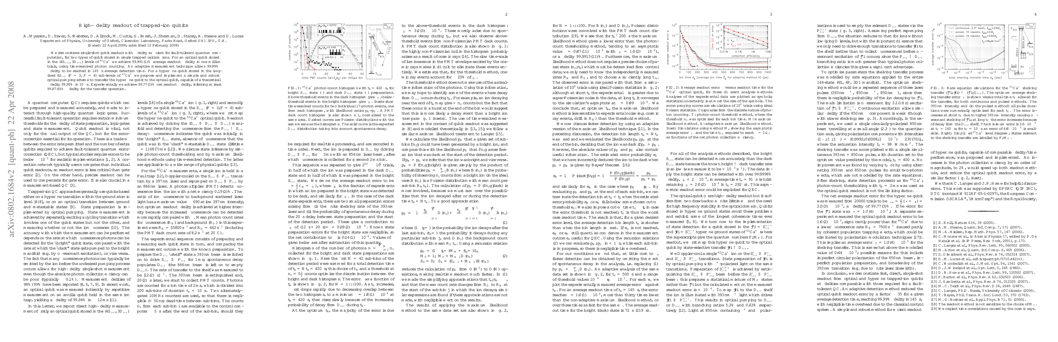 This work demonstrates the feasibility of fast and reliable readout from trapped-ion qubits, which is crucial for quantum computing applications.