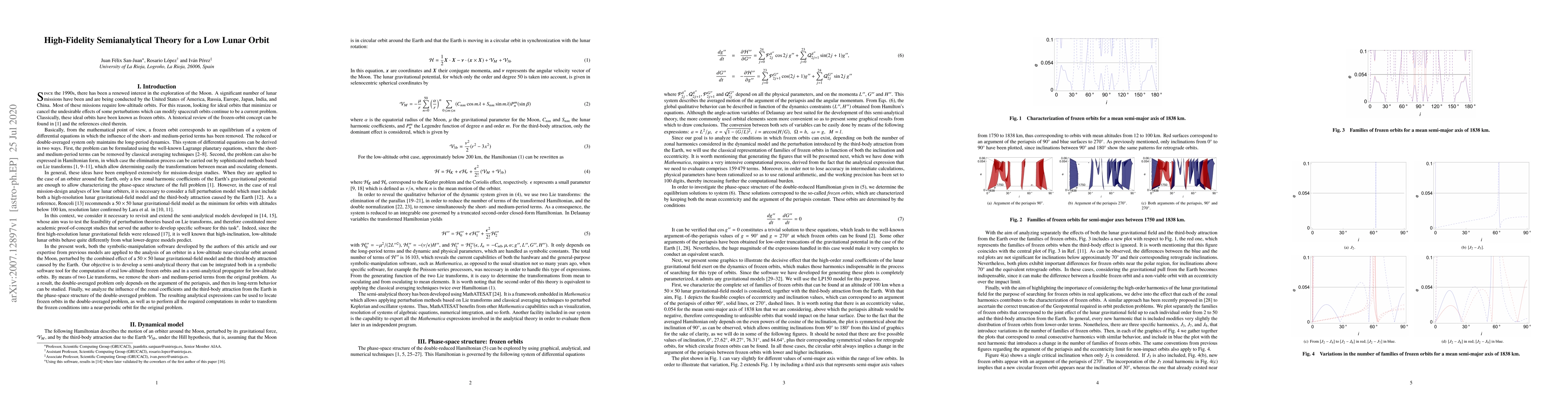 We have developed a semi-analytical theory for low-altitude lunar orbits with the aim of verifying what the minimum order of the gravitational model to be considered should be in order to produce realistic results that can be applied to the analysis and design of real missions. With that purpose, we have considered a perturbation model that comprises a 50x50 gravitational field and the third-body attraction from the Earth. Initially, the process of developing the theory is briefly described. Then, the discussion is focused on the search for frozen orbits, for which the effect of each harmonic term of the gravitational model is analyzed separately. As higher-order zonal harmonics are included, new families of frozen orbits can appear. In addition, the eccentricity and inclination values for which frozen orbits can exist change. This effect is very important and needs to be taken into consideration, because ignoring high-order harmonics can lead to predict the existence of frozen orbits at certain inclinations at which the frozen-orbit eccentricity actually falls beyond the impact limit. Consequently, it has been verified that, in agreement with other authors, a 50x50 gravitational model should be the minimum to be considered for real applications.