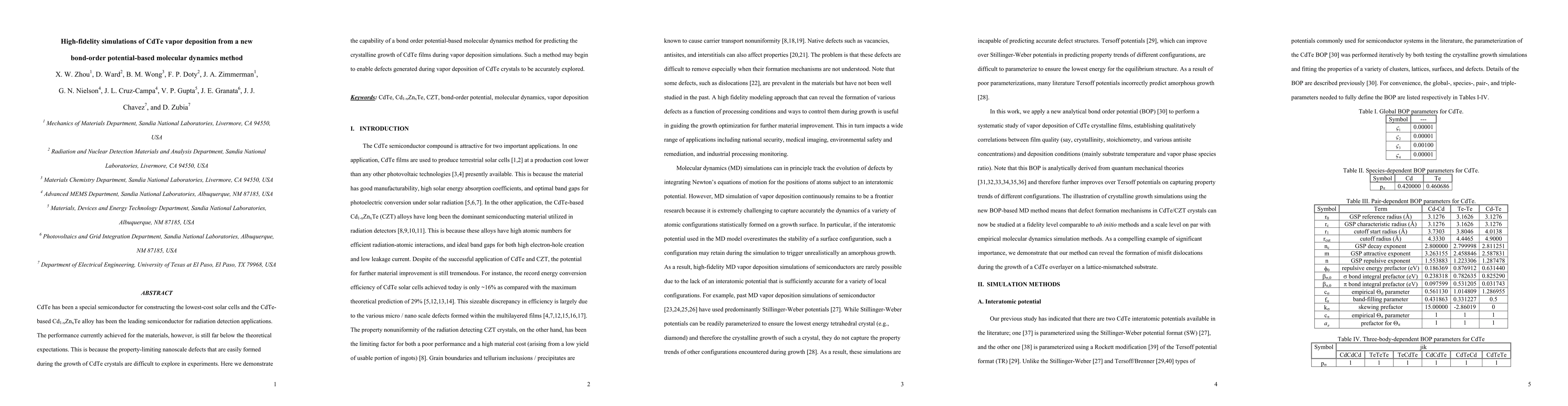 This paper introduces a new bond-order potential-based molecular dynamics method to simulate CdTe vapor deposition, aiming to predict crystalline growth and identify nanoscale defects that limit material performance. The method holds potential for advancing the understanding and improvement of CdTe and its alloys for solar cells and radiation detection.