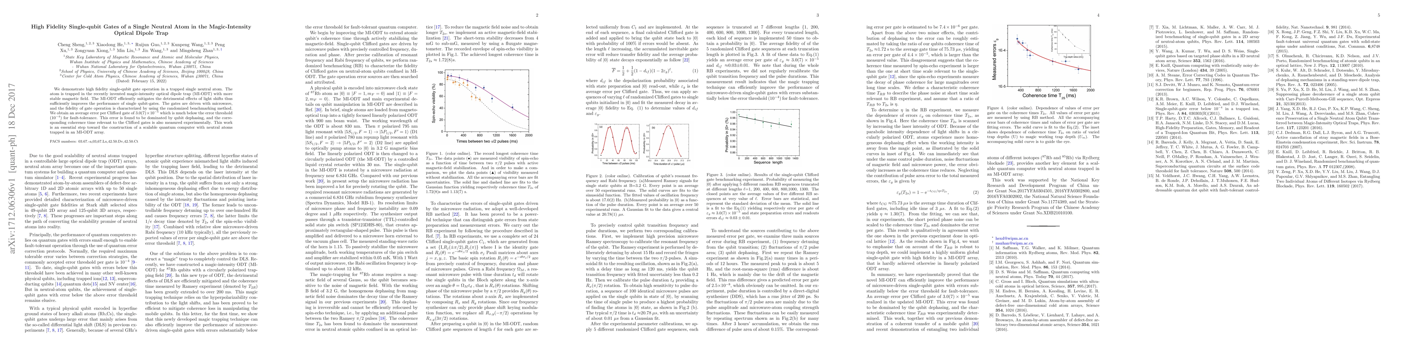 This paper demonstrates high-fidelity single-qubit gate operations in a trapped neutral atom using a magic-intensity optical dipole trap (MI-ODT) that stabilizes magnetic fields and mitigates light shifts. The achieved gate fidelity, with an error rate of $3.0(7)\times10^{-5}$, is well below the fault-tolerance threshold, marking a significant step towards scalable quantum computing with neutral atoms.