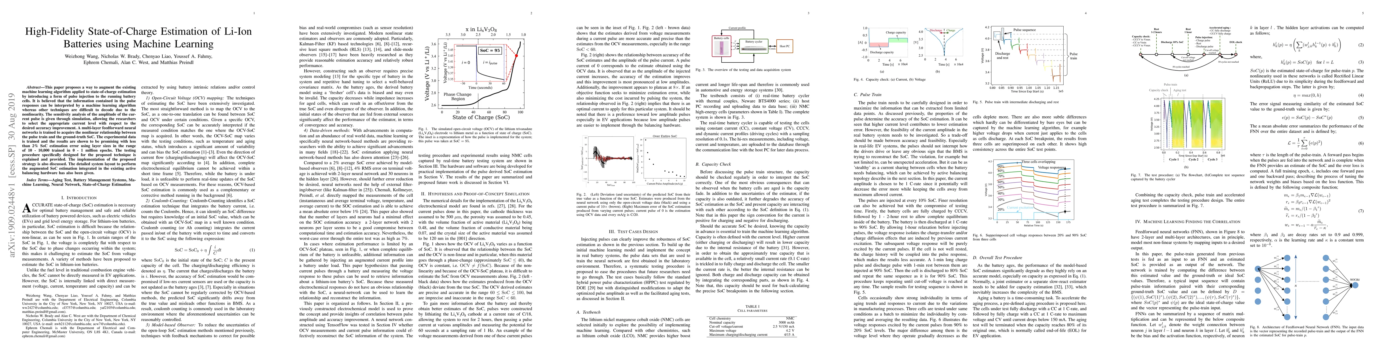 Researchers developed a machine learning algorithm to estimate state-of-charge of lithium-ion batteries using pulse injection, achieving less than 2% SoC estimation error.