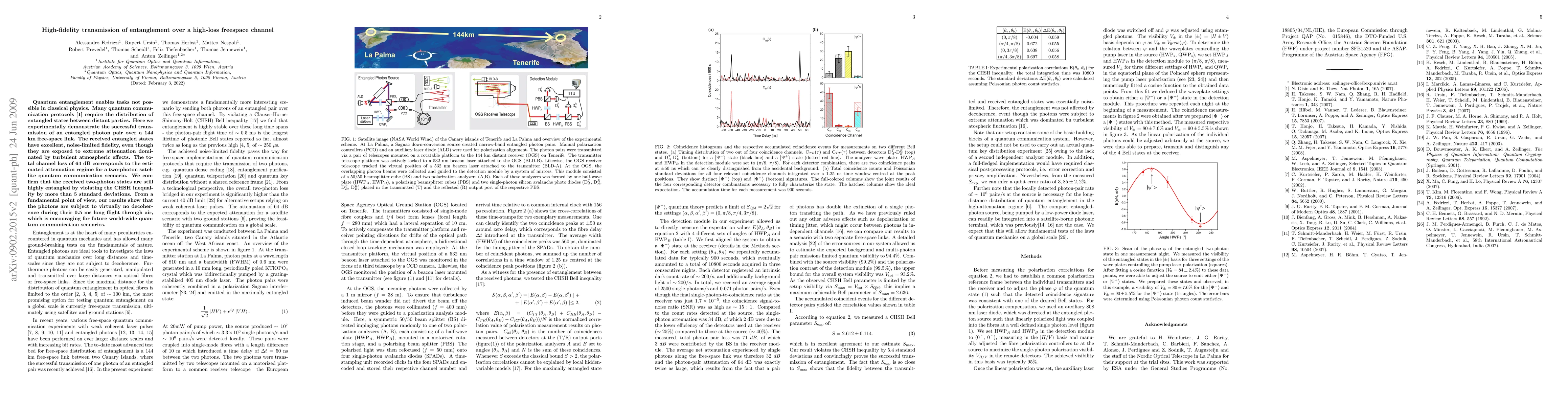 This paper demonstrates the successful transmission of entangled photon pairs over a 144 km free-space channel, achieving high-fidelity states despite extreme atmospheric attenuation. The results indicate minimal decoherence, supporting the feasibility of long-distance quantum communication.