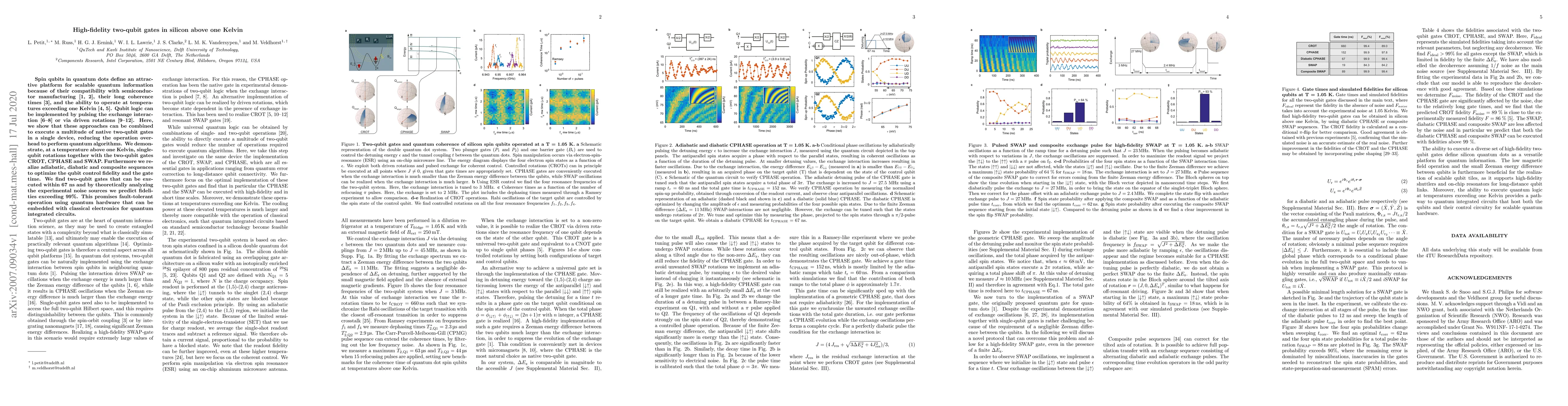 This paper demonstrates high-fidelity two-qubit gates in silicon spin qubits in quantum dots, enabling scalable quantum computing through optimized single-qubit rotations and advanced two-qubit operations such as CROT, CPHASE, and SWAP, achieving gate times under 67 ns with predicted fidelities over 99%.