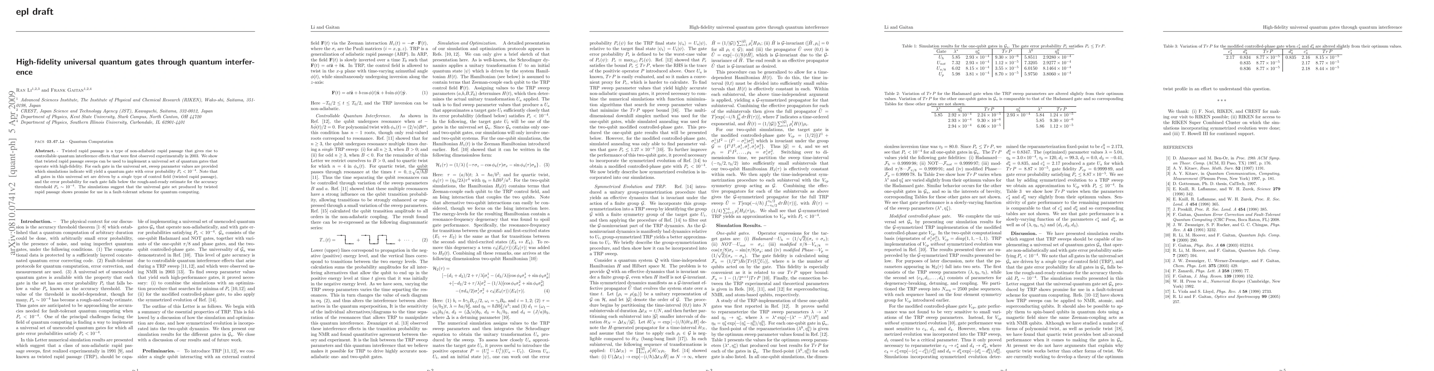 This paper demonstrates that twisted rapid passage can implement a universal set of high-fidelity quantum gates, all driven by a single control field, with error probabilities below 10**(-4). The proposed gates show potential for use in fault-tolerant quantum computing.