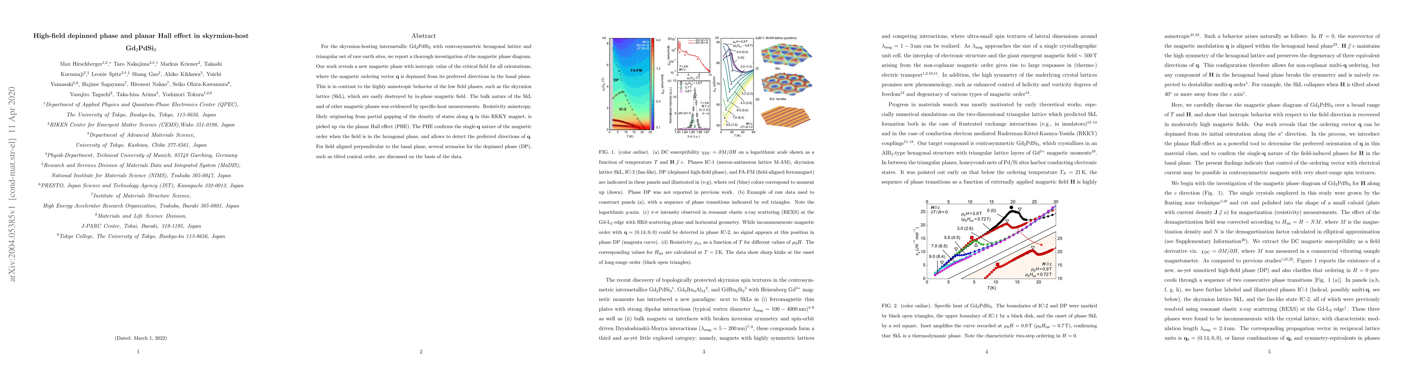 The research investigates Gd2PdSi3, a skyrmion host, revealing a new magnetic phase with isotropic critical field, contrasting the anisotropic low-field phases like skyrmion lattice. The study uses specific-heat measurements to confirm bulk nature of magnetic phases and resistivity anisotropy via planar Hall effect to detect magnetic order and q-preferred directions.