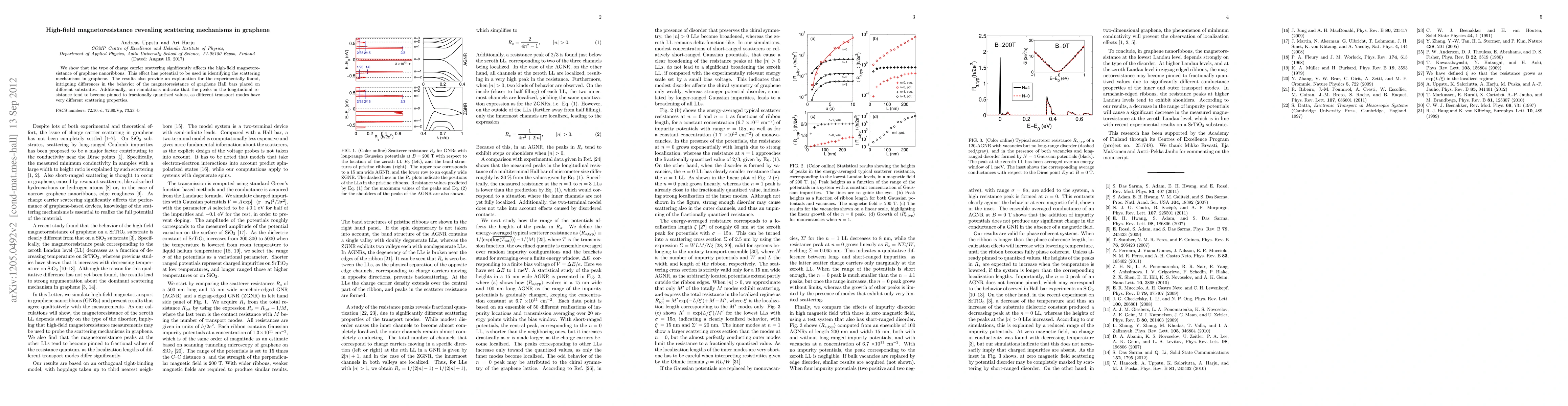 This study reveals that charge carrier scattering mechanisms significantly influence the high-field magnetoresistance in graphene nanoribbons, offering a method to identify these mechanisms. The findings also explain the observed differences in graphene Hall bars' magnetoresistance on various substrates, and simulations suggest that resistance peaks align with fractionally quantized values due to distinct scattering properties of transport modes.