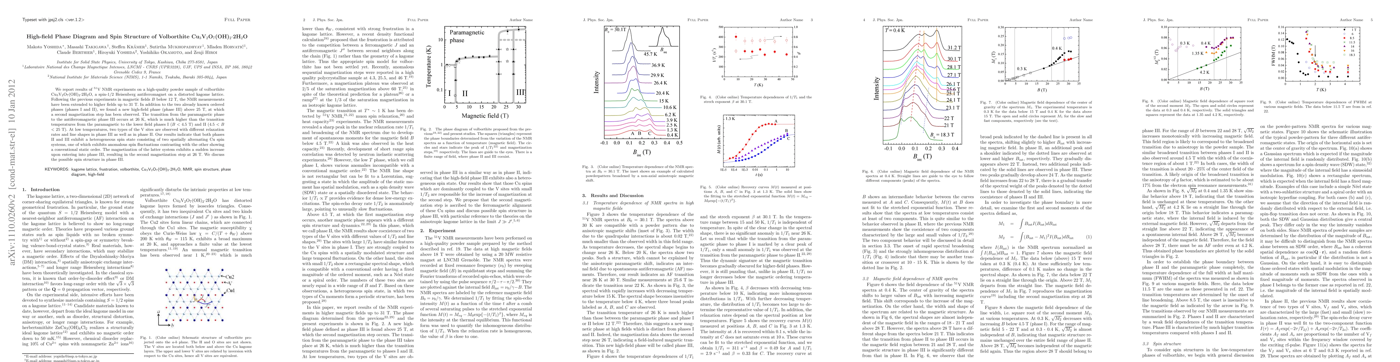 This study reveals a new high-field phase (phase III) in volborthite Cu3V2O7(OH)2/2H2O above 25 T, characterized by a second magnetization step and a transition temperature of 26 K. The research identifies distinct spin states and anomalous spin fluctuations in phases II and III, suggesting a complex spin structure.