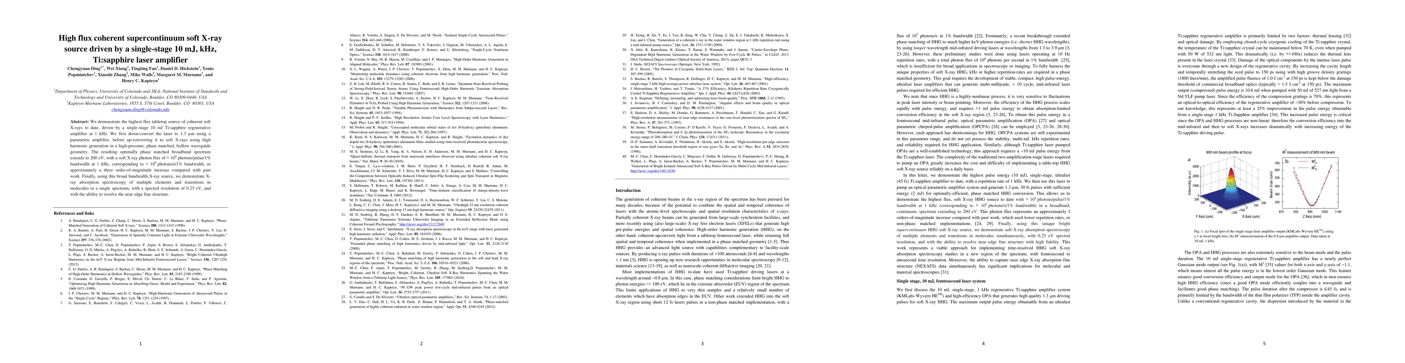 This paper demonstrates a high-flux coherent soft X-ray source generated by a single-stage Ti:sapphire laser amplifier, achieving a photon flux of >10^6 photons/pulse/1% bandwidth. The method involves down-conversion to 1.3 µm followed by high harmonic generation in a hollow waveguide, resulting in a broadband spectrum extending to 200 eV.