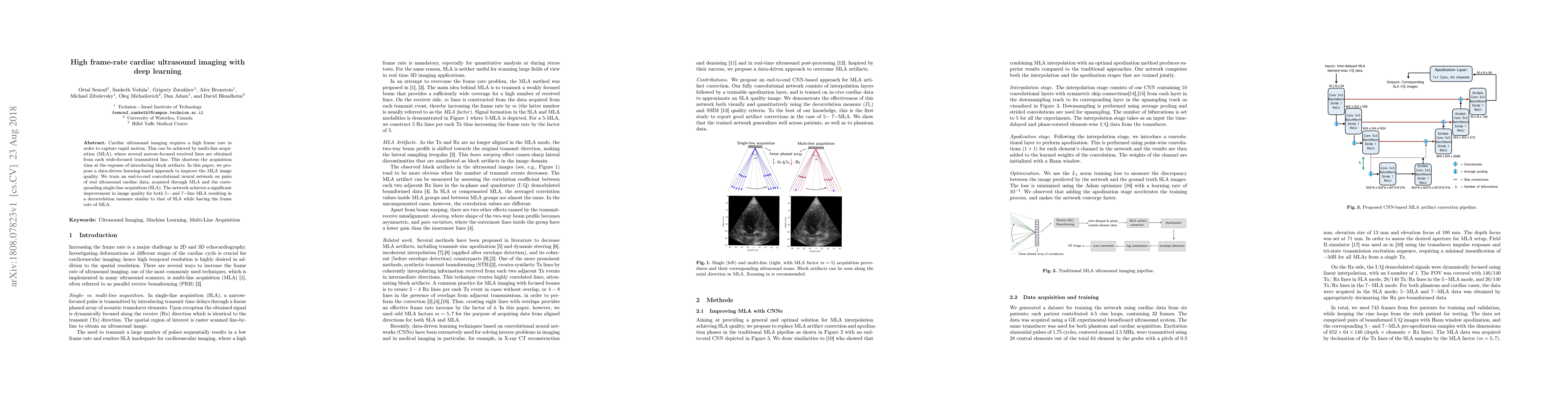 This paper proposes a deep learning-based method to improve high frame-rate cardiac ultrasound imaging using multi-line acquisition (MLA), addressing block artifacts. An end-to-end convolutional neural network trained on MLA and single-line acquisition (SLA) data significantly enhances MLA image quality, achieving SLA-like decorrelation while maintaining MLA's high frame rate.