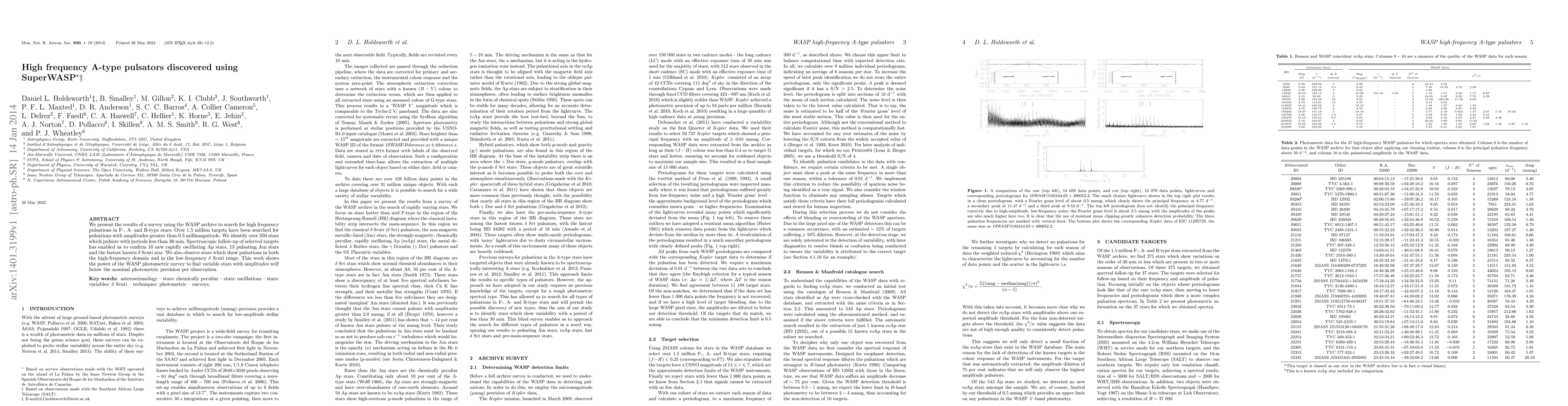 We present the results of a survey using the WASP archive to search for high frequency pulsations in F-, A- and B-type stars. Over 1.5 million targets have been searched for pulsations with amplitudes greater than 0.5 millimagnitude. We identify over 350 stars which pulsate with periods less than 30 min. Spectroscopic follow-up of selected targets has enabled us to confirm 10 new rapidly oscillating Ap stars, 13 pulsating Am stars and the fastest known $\delta$ Scuti star. We also observe stars which show pulsations in both the high-frequency domain and in the low-frequency $\delta$ Scuti range. This work shows the power of the WASP photometric survey to find variable stars with amplitudes well below the nominal photometric precision per observation.