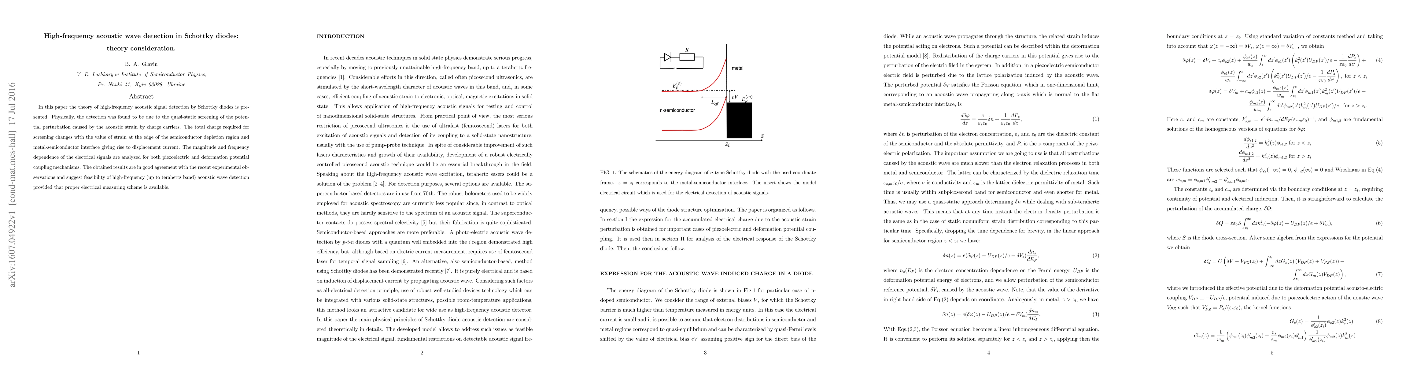 Researchers discovered that Schottky diodes can detect high-frequency acoustic waves through quasi-static screening of potential perturbations, allowing for terahertz band detection with proper electrical measurement schemes.